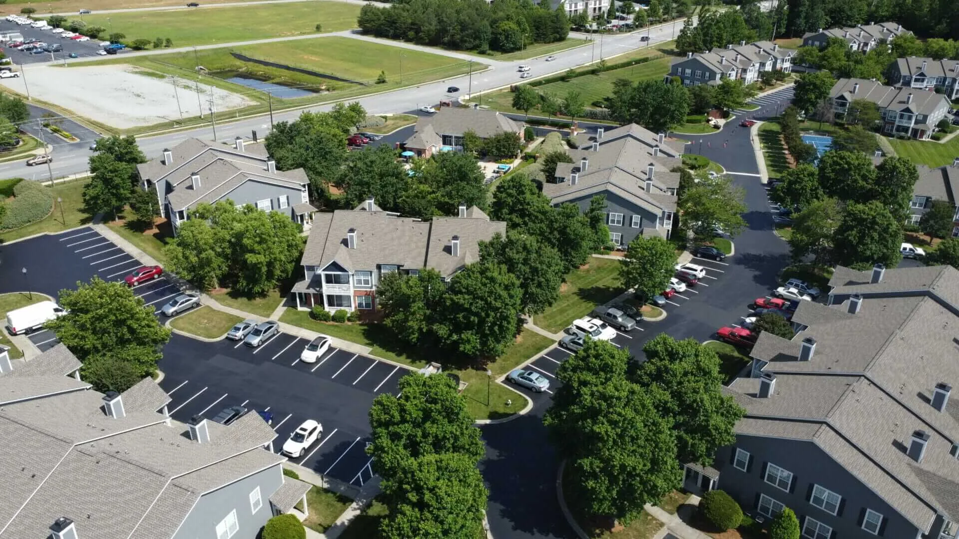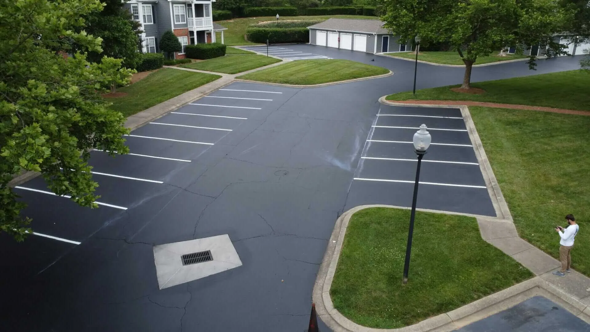 This phased sealcoating project was completed using sections throughout the parking lot so that residents would still have continuous access to the parking lot and their home. Starting in the morning and opening that same section in the evening, this entire complex was sealcoated and striped in four days.