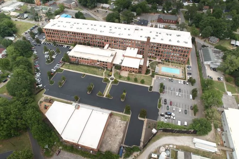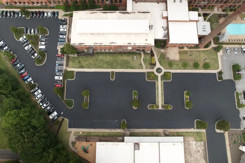 Built in 2016, this apartment community worked with our team to seal & stripe their parking lot for the first time. Without exposed aggregate in the asphalt, sealcoating is a great solution to preserve the life of the pavement and give it a fresh look for residents. If utilized early enough in the life of the pavement, can last 2-4 years before needing to sealcoat again or begin looking at repairs.