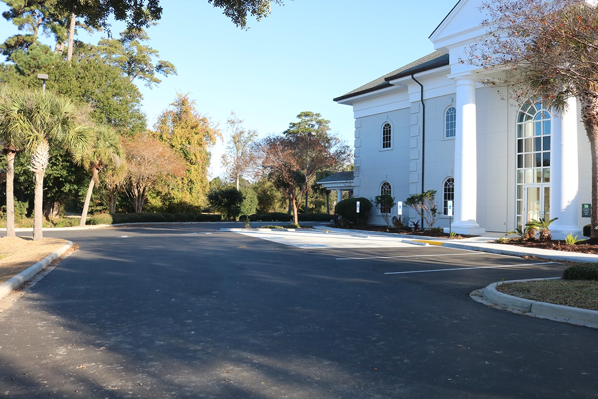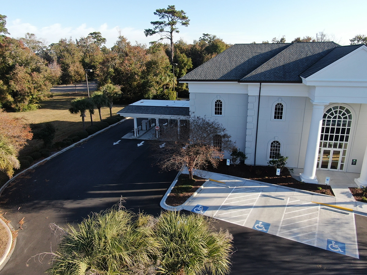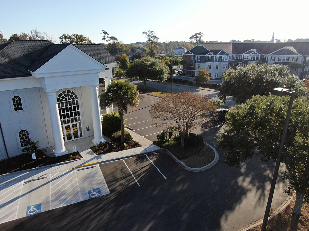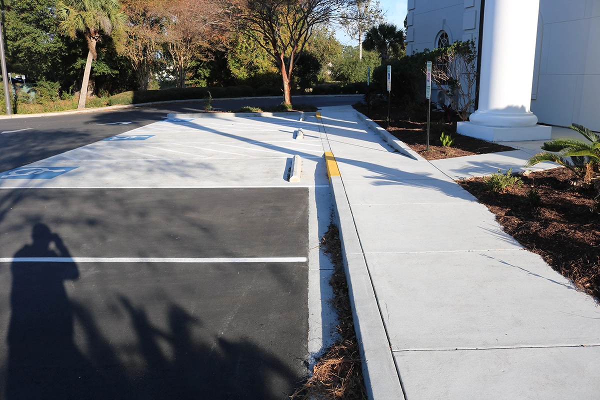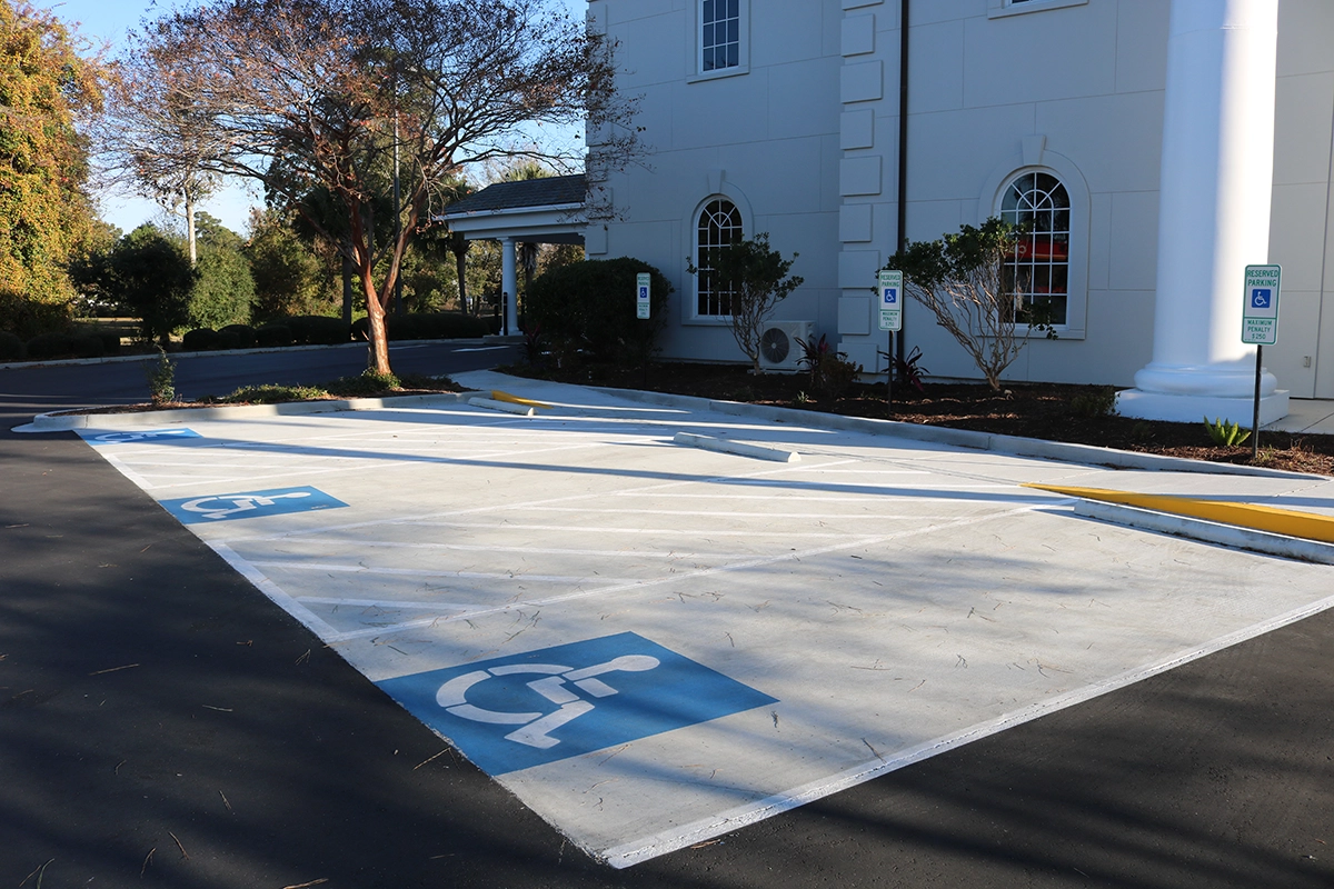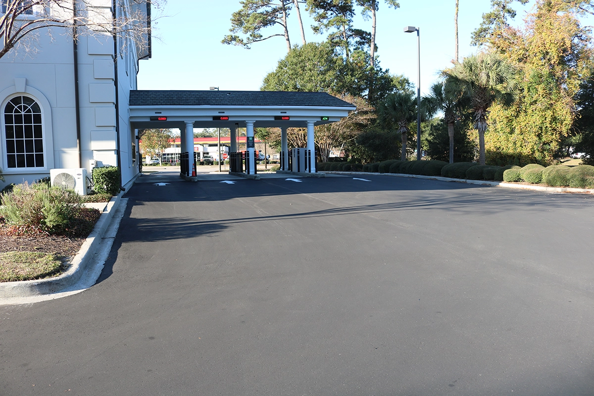 Team Turner has years of experience working with banks throughout the Southeast. Why are we such a trusted client for so many bank branches? Stringent ADA standards and quality expectations. This project included replacing all curb and sidewalk along the front of the branch, pouring a concrete pad for handicap parking spaces and repaving the entire parking lot.