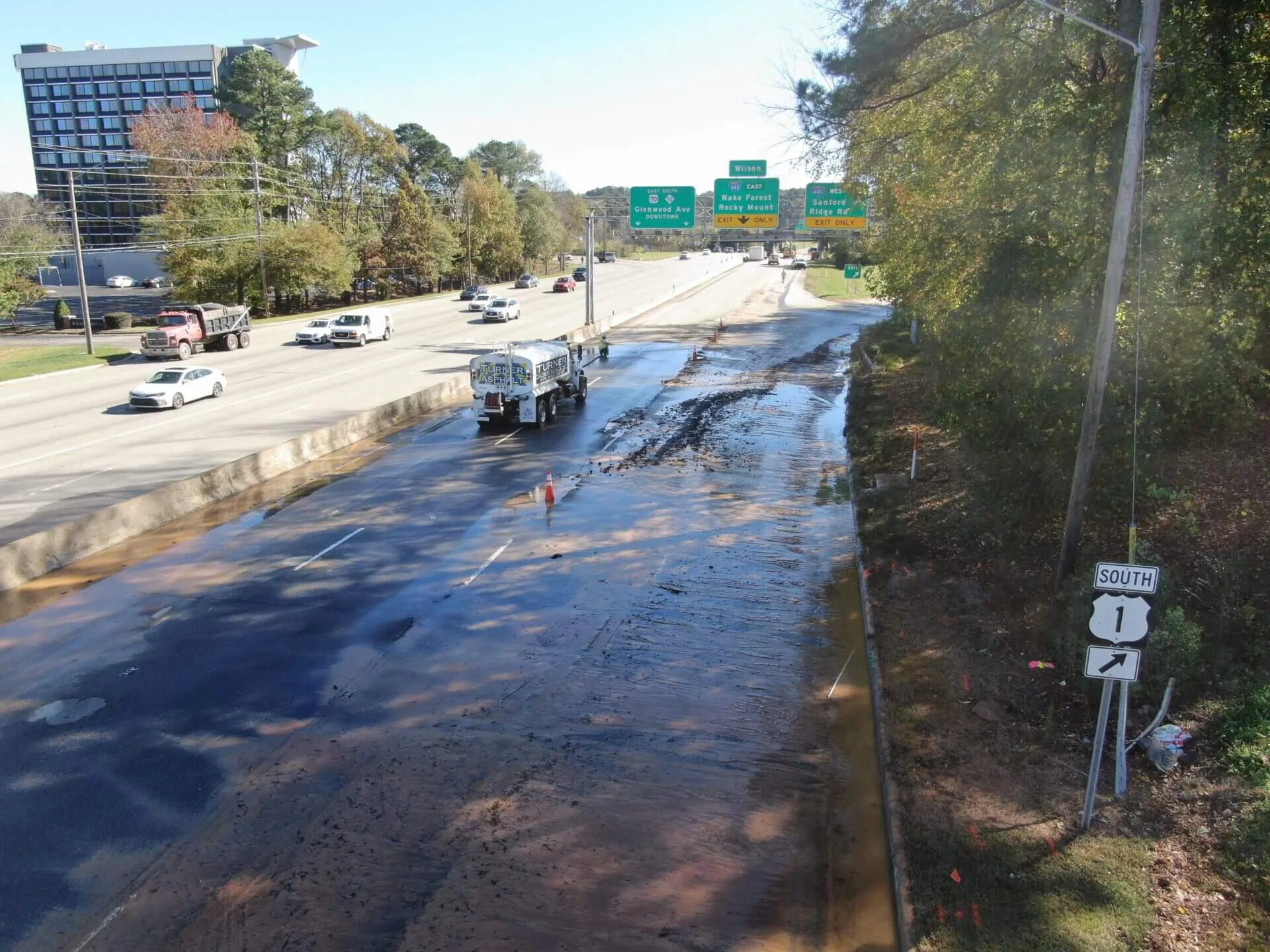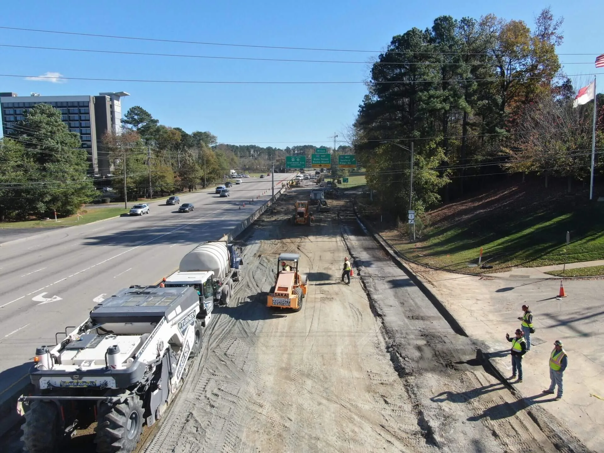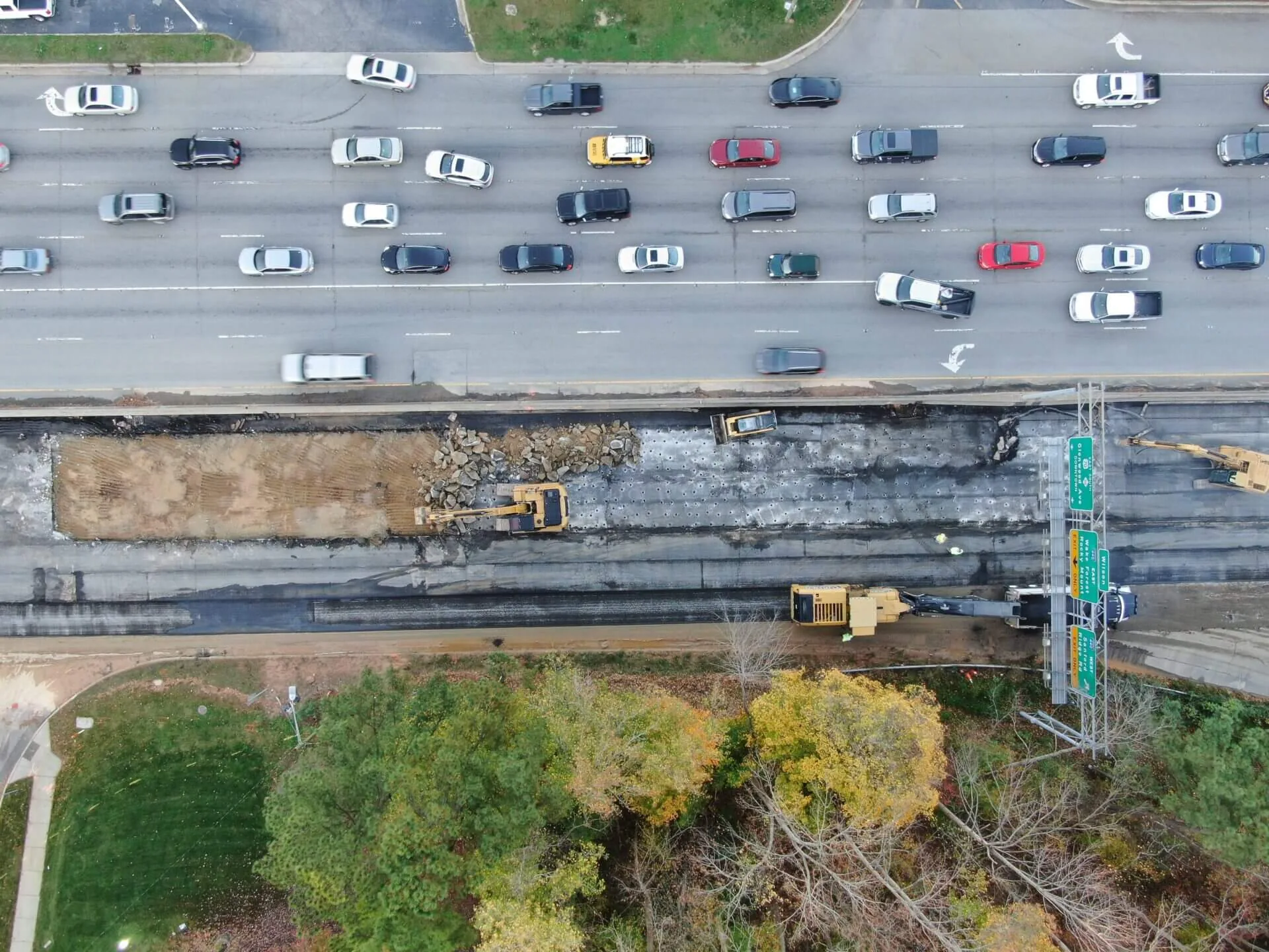 A water main break on Glenwood Avenue just one week before Thanksgiving 2020 created a potential nightmare for the City of Raleigh, Crabtree Valley Mall and Thanksgiving travelers. Our emergency response team was able to mobilize equipment within hours to begin a non-stop soil stabilization project to open the road before the Thanksgiving holiday. This project required existing concrete excavation, soil stabilization as well as paving.
