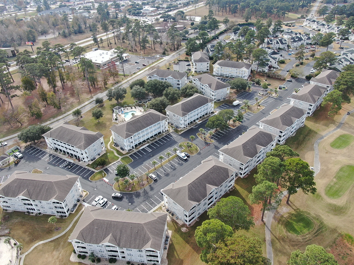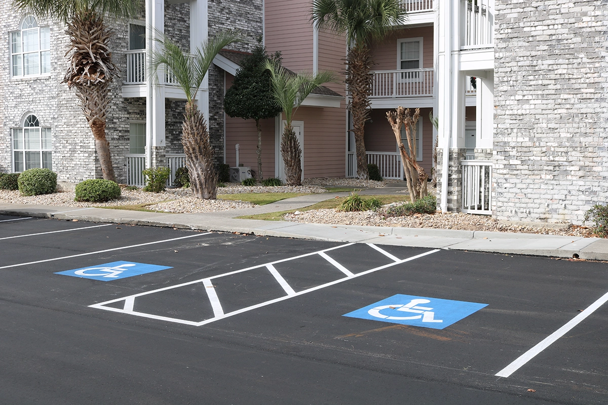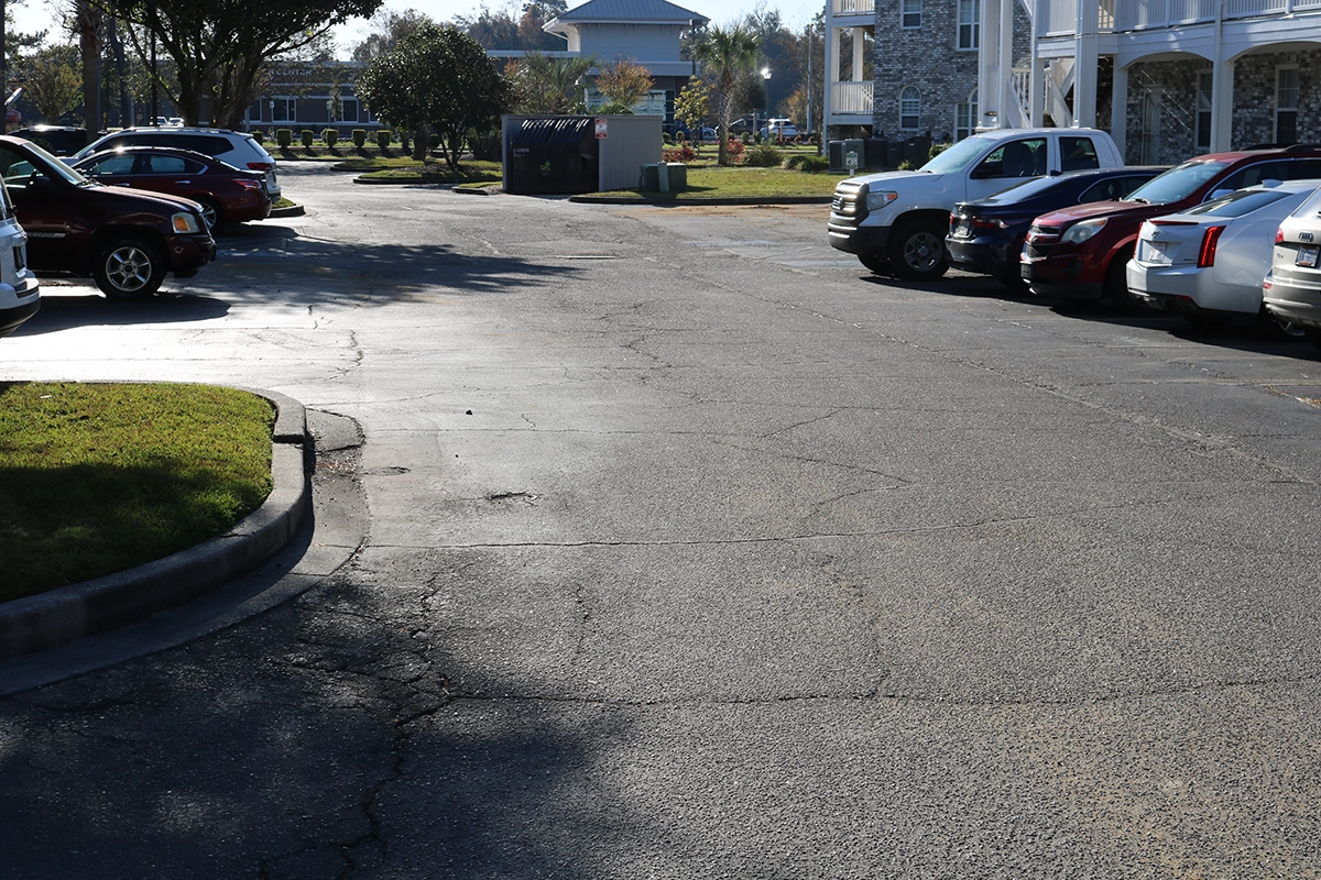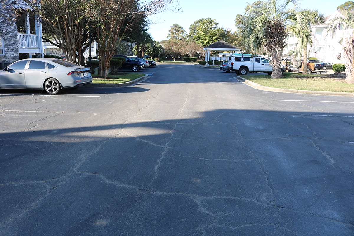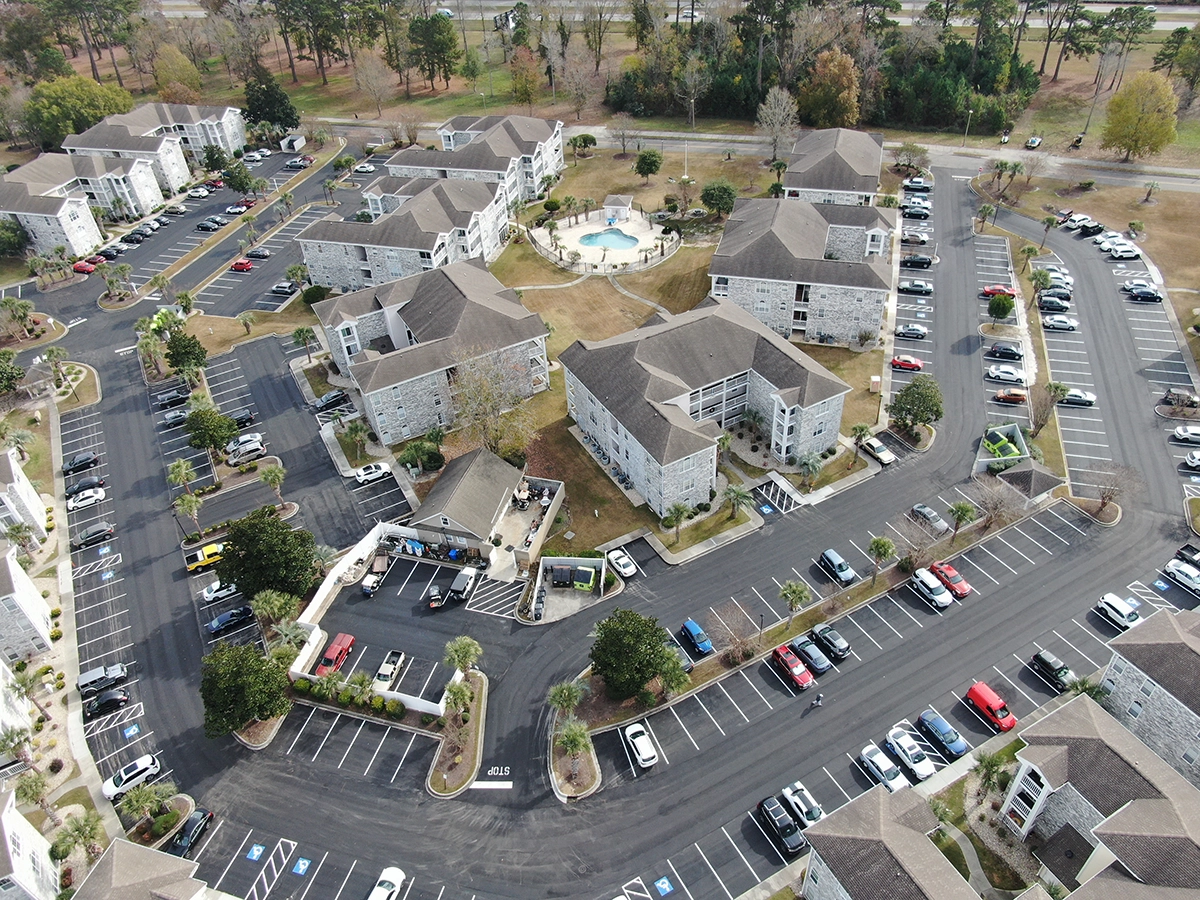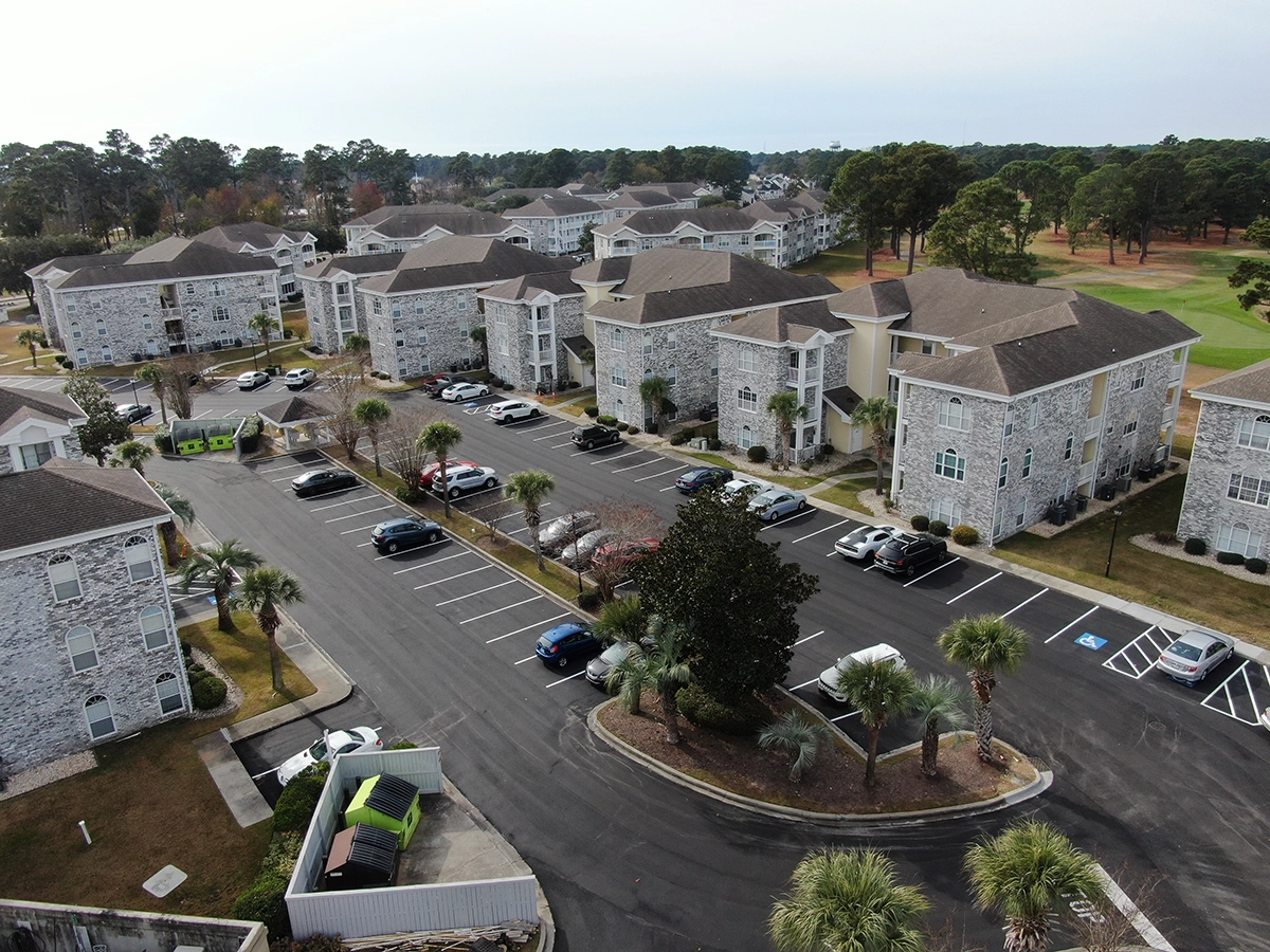 We were able to showcase our total in-house capabilities as a self-performing, full-service contractor on this large condo-style HOA in the Carolina Forest area of Myrtle Beach. With such a significant investment to repave the entire parking lot, we advised the client to take the necessary steps to ensure their investment would last. After conducting core reports and a stormwater assessment of the community’s underground utility system, our team identified multiple areas requiring excavation and stormwater pipe replacement and spot repairs of existing utilities showing damage. While it can be time intensive, proper planning prevents sinkholes and prematurely damaged asphalt. Once stormwater repairs were complete, our concrete crew arrived to repair curbing and sidewalk throughout the community and install 45 (!) ADA-compliant accessibility ramps, removing the existing asphalt ramps that jutted out into the parking areas. Finally, we spent three weeks repaving the entire community in two lifts for a 3” parking lot. This project was completed in the Fall when there was slightly less traffic throughout the HOA. The result – a safe, easily-accessible and beautiful community for residents to enjoy.