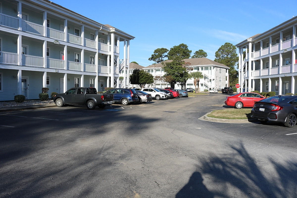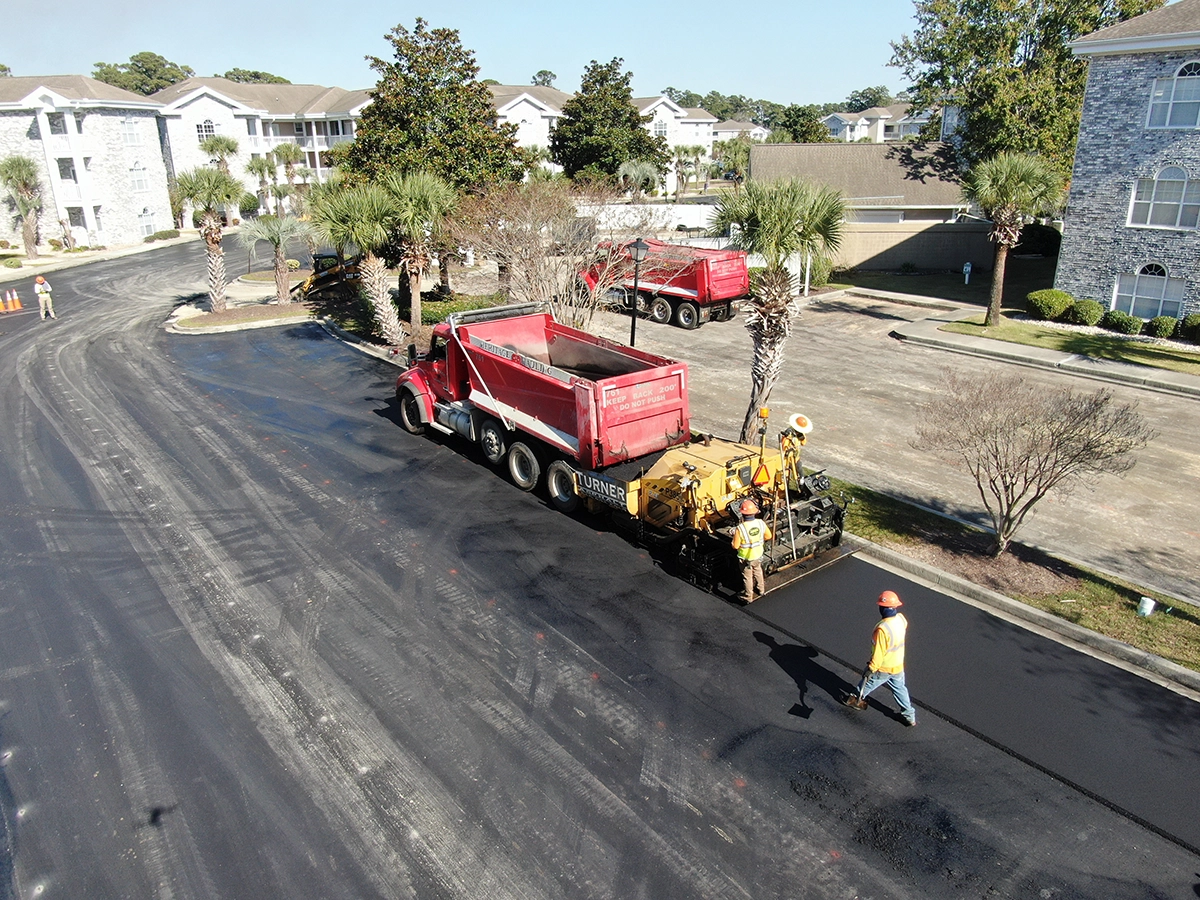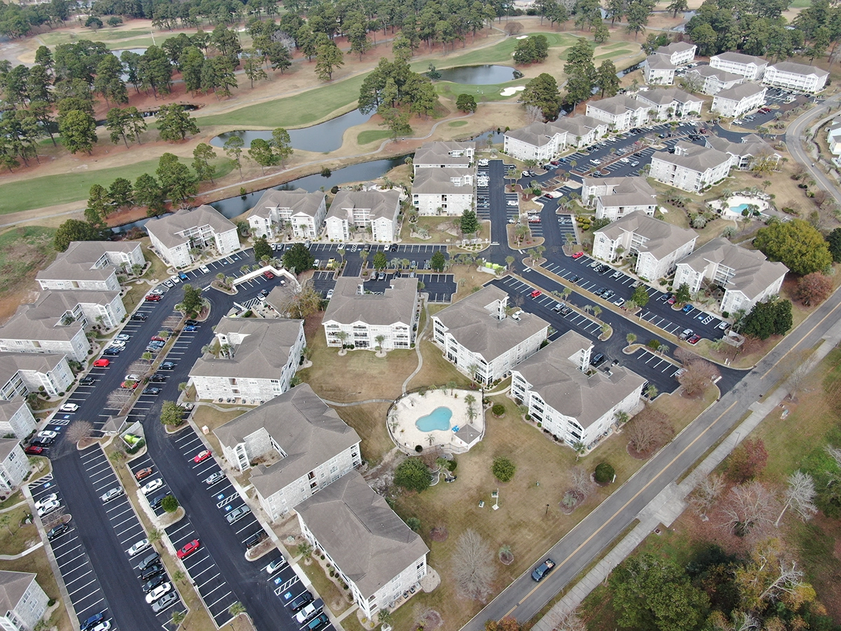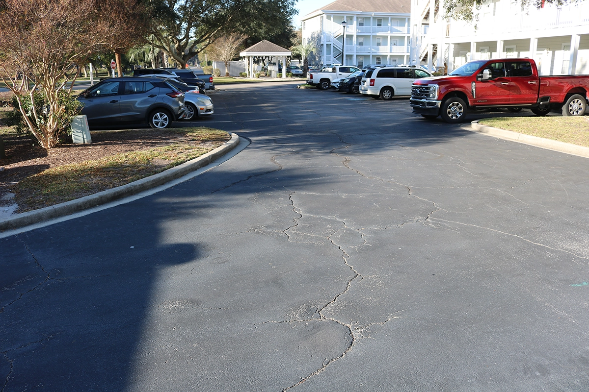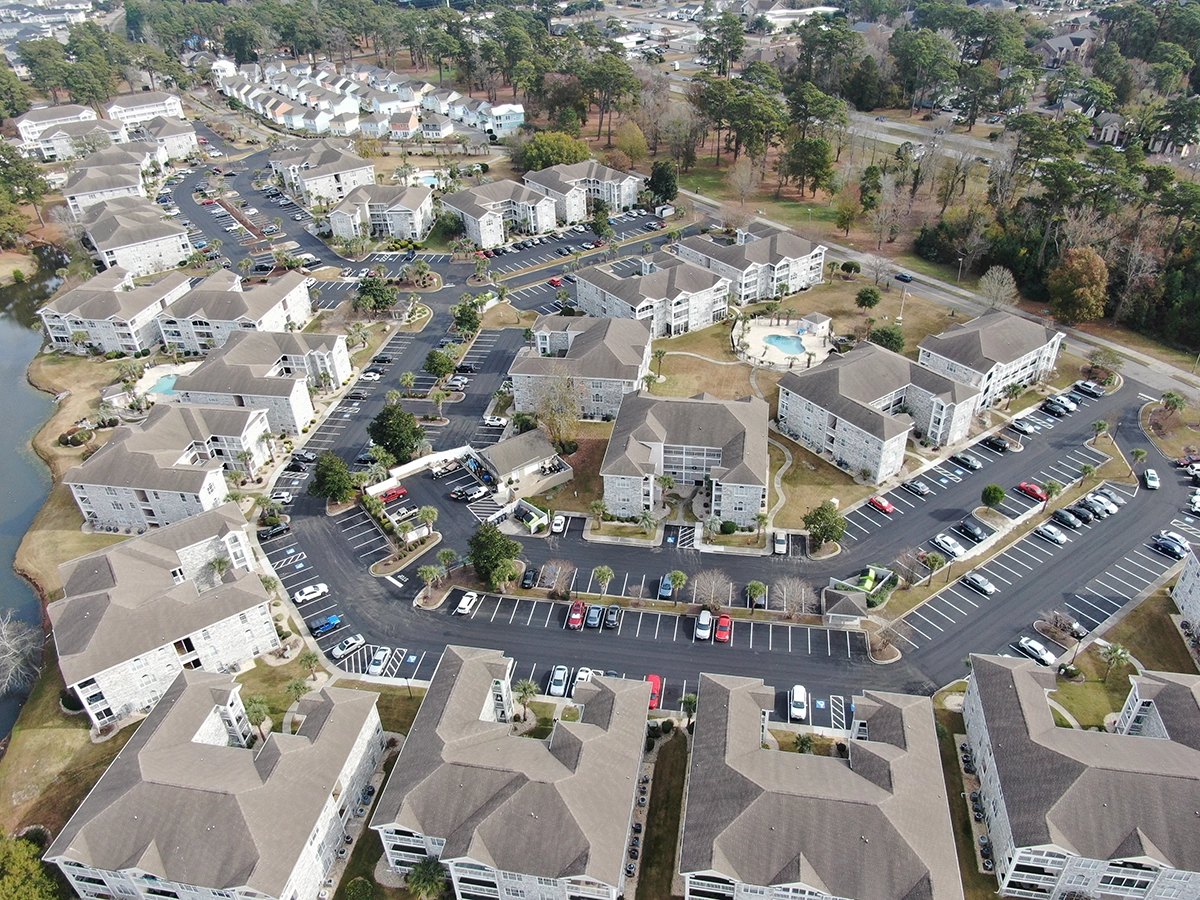 We were able to showcase our total in-house capabilities as a self-performing, full-service contractor on this large condo-style HOA in the Carolina Forest area of Myrtle Beach. With such a significant investment to repave the entire parking lot, we advised the client to take the necessary steps to ensure their investment would last. After conducting core reports and a stormwater assessment of the community’s underground utility system, our team identified multiple areas requiring excavation and stormwater pipe replacement and spot repairs of existing utilities showing damage. While it can be time intensive, proper planning prevents sinkholes and prematurely damaged asphalt. Once stormwater repairs were complete, our concrete crew arrived to repair curbing and sidewalk throughout the community and install 45 (!) ADA-compliant accessibility ramps, removing the existing asphalt ramps that jutted out into the parking areas. Finally, we spent three weeks repaving the entire community in two lifts for a 3” parking lot. This project was completed in the Fall when there was slightly less traffic throughout the HOA. The result – a safe, easily-accessible and beautiful community for residents to enjoy.