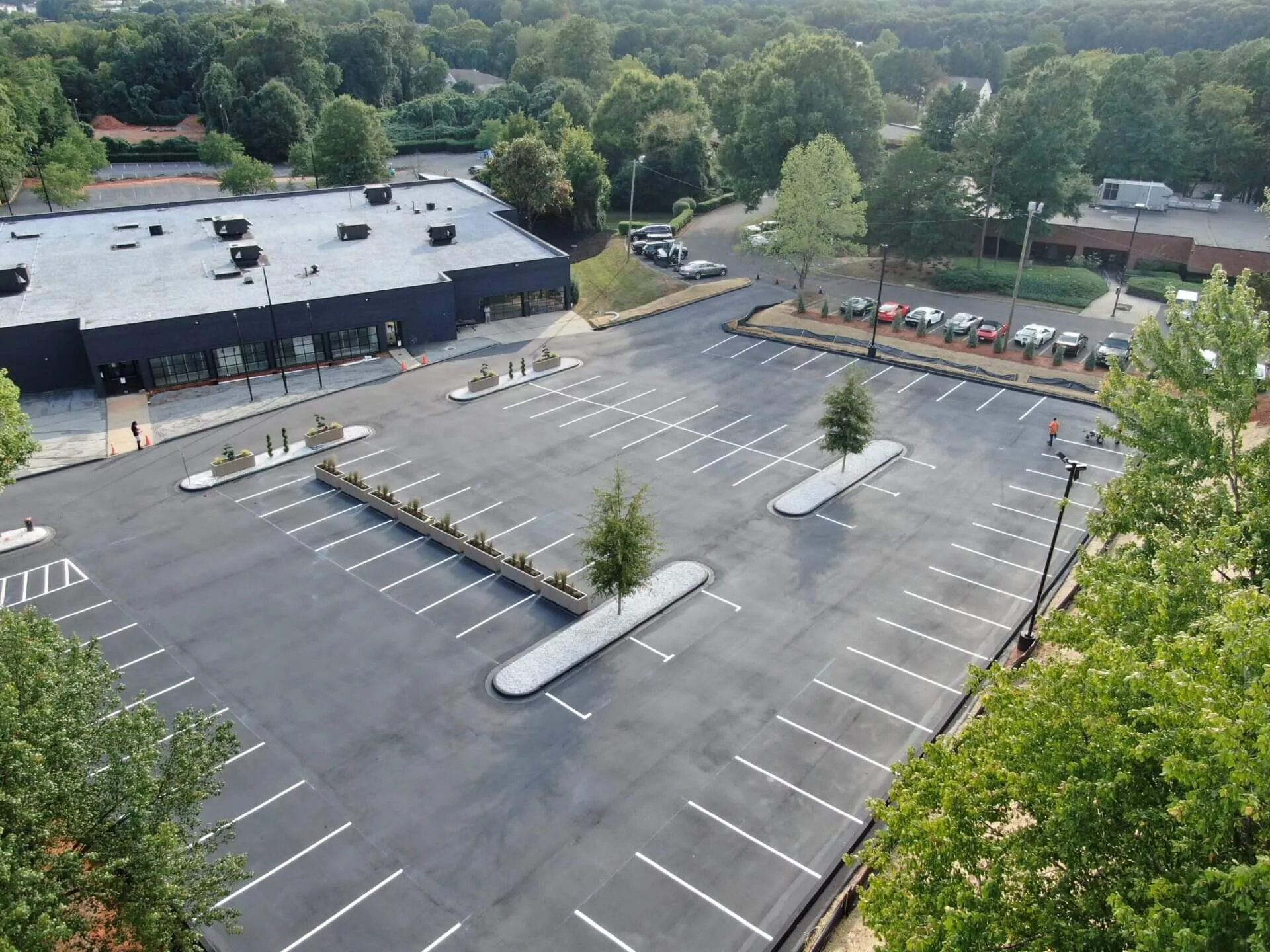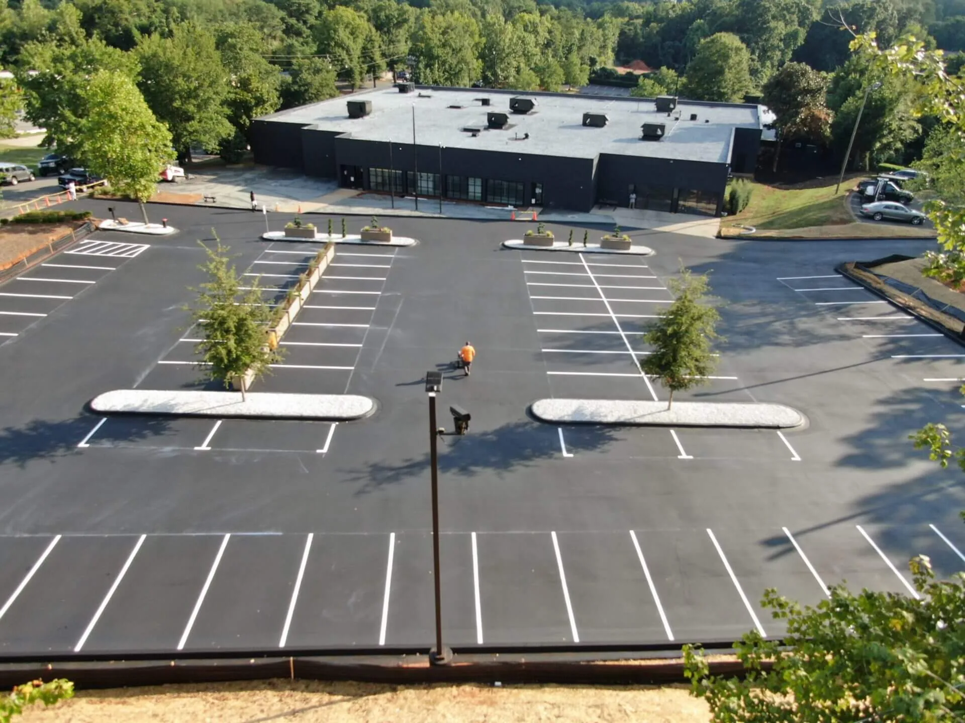 Preparing to be featured on a national TV show, this exotic car dealership needed their parking lot to be a strong, black contrast from the bright sports and luxury cars on their lot. This project included sealcoating the lot and reconfiguring the line striping layout to best portray their car collection for TV.