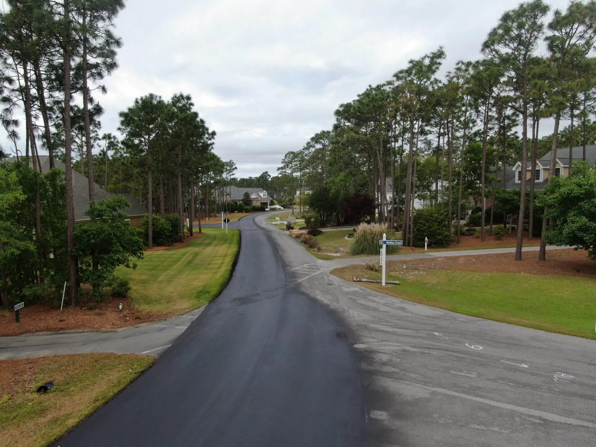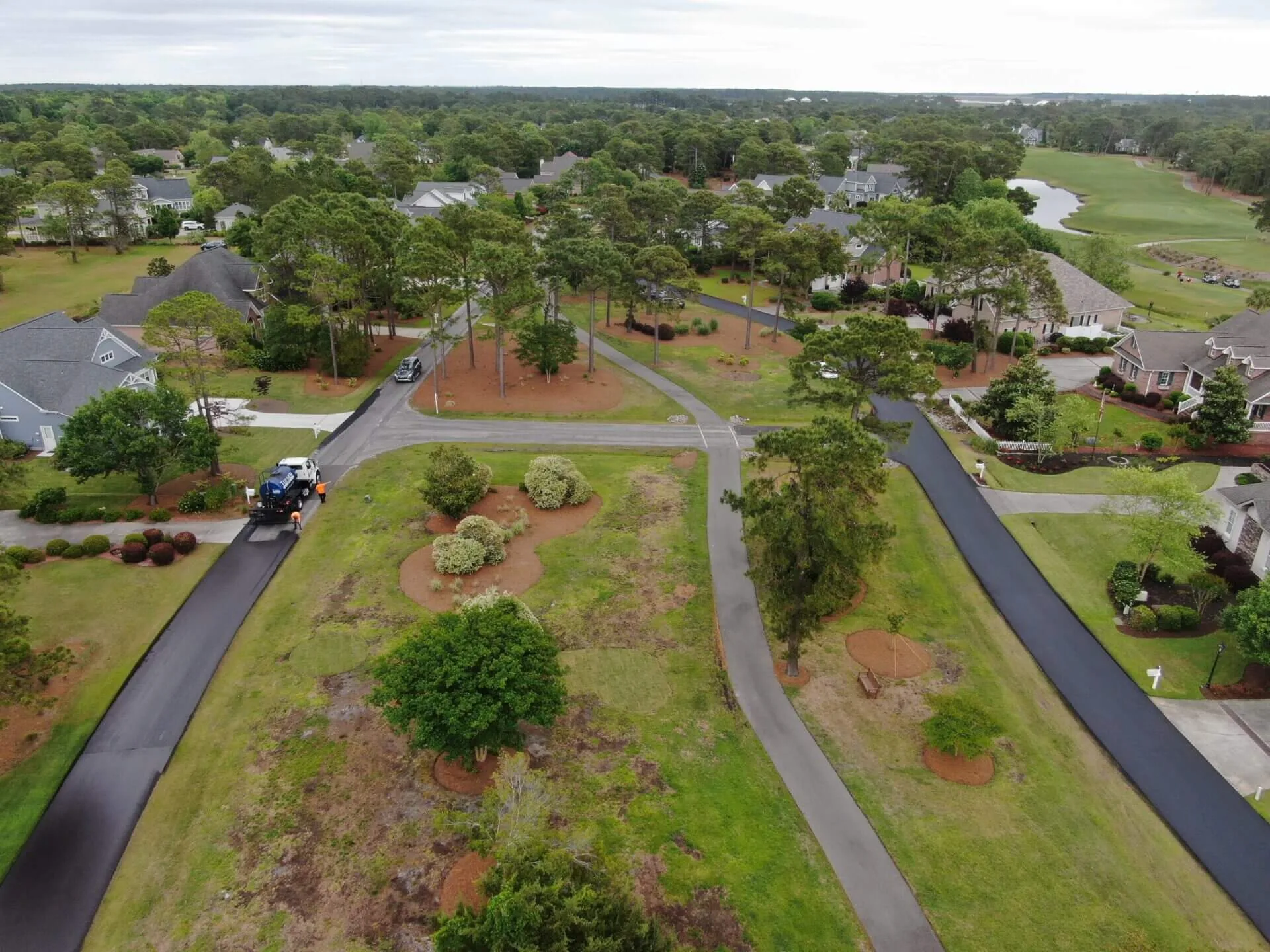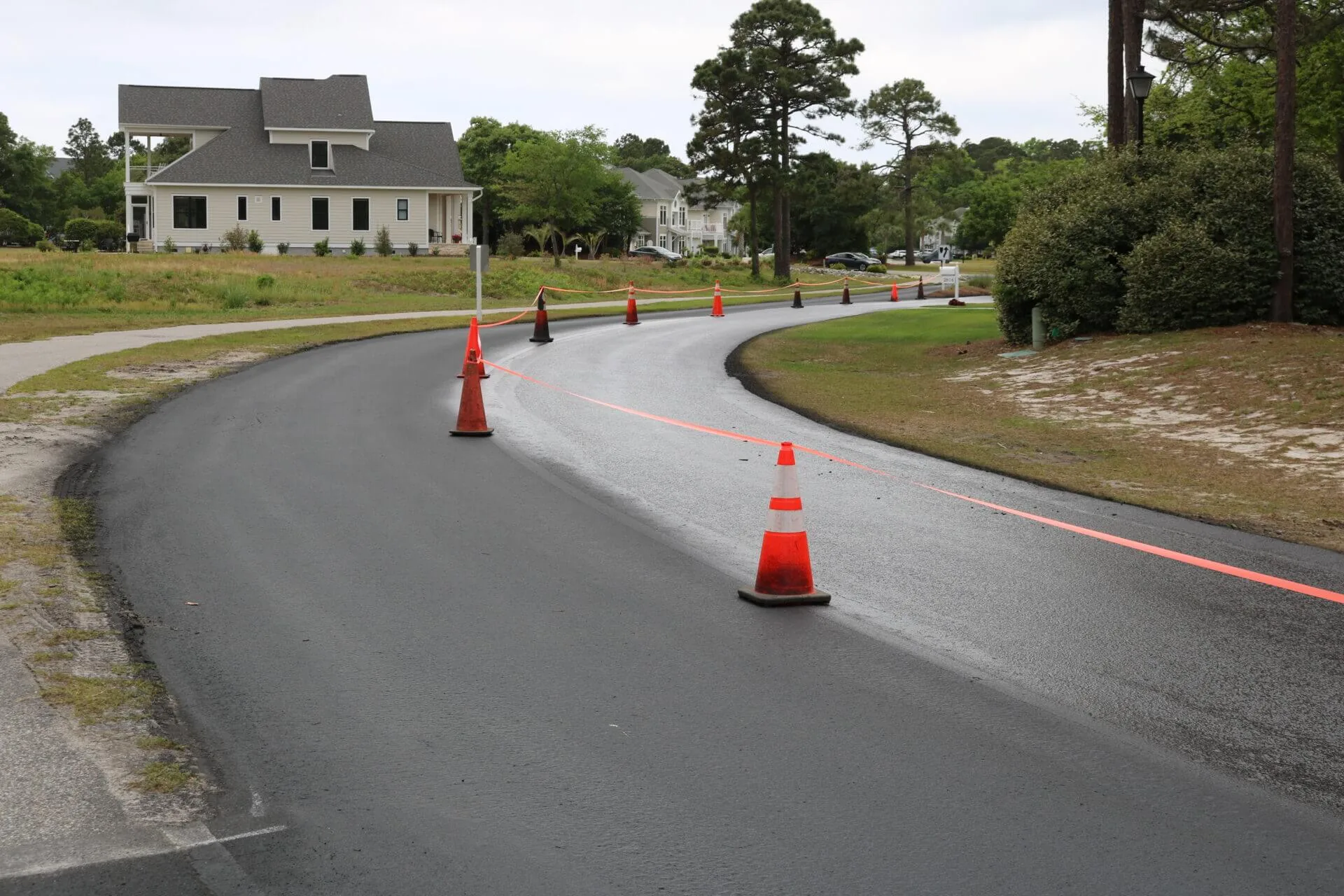 A large, private subdivision located about an hour south of Wilmington underwent one phase of a multi-year sealcoating project within the community. Working with the homeowner’s association to keep traffic moving throughout the subdivision, our team utilizes a multi-day approach where half of one road is sealcoated, while the other half remains open. Once the sealed portion has 24 hours to cure, it will be reopened while the other side of the street is sealed. This phase, completed in 2021, totaled 8 miles of roads throughout the community.
