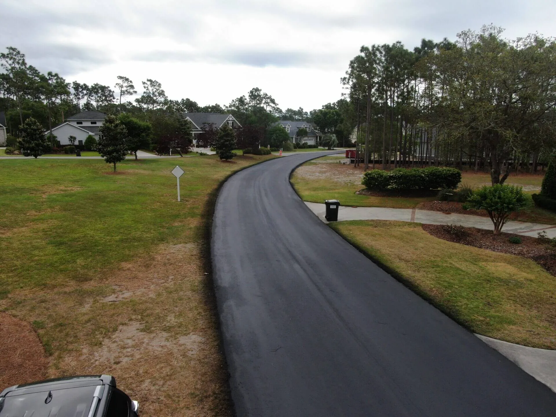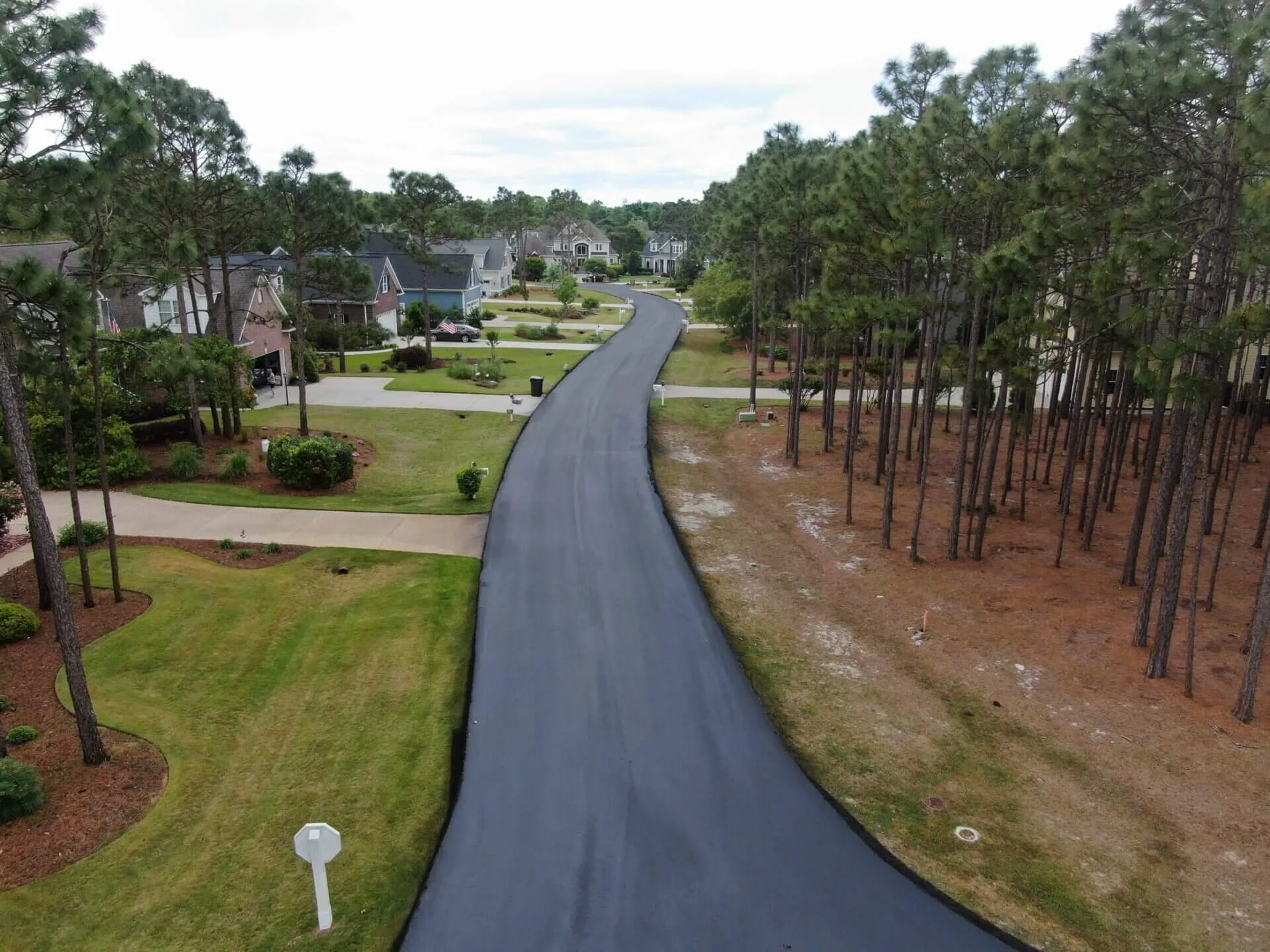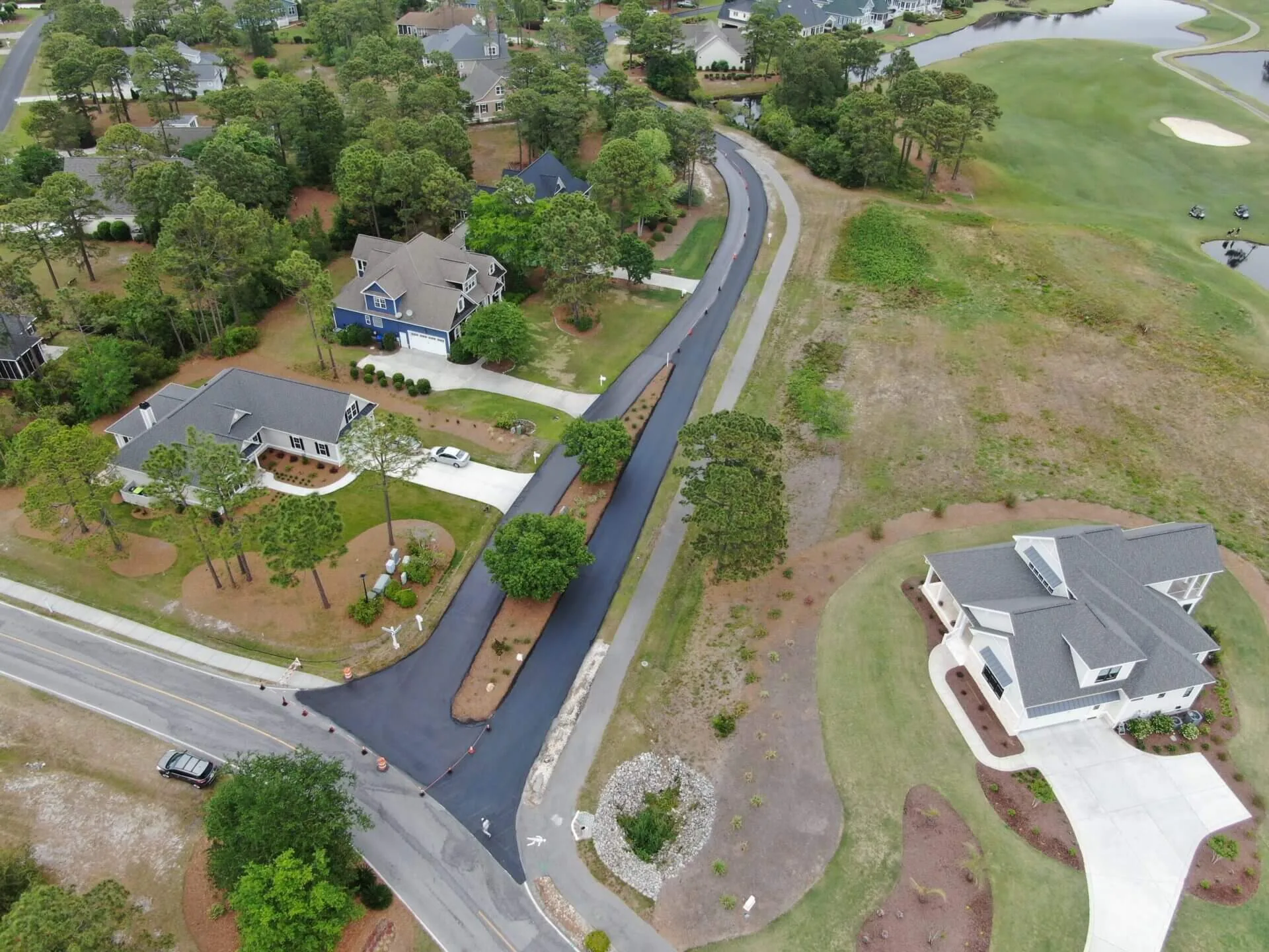 A large, private subdivision located about an hour south of Wilmington underwent one phase of a multi-year sealcoating project within the community. Working with the homeowner’s association to keep traffic moving throughout the subdivision, our team utilizes a multi-day approach where half of one road is sealcoated, while the other half remains open. Once the sealed portion has 24 hours to cure, it will be reopened while the other side of the street is sealed. This phase, completed in 2021, totaled 8 miles of roads throughout the community.