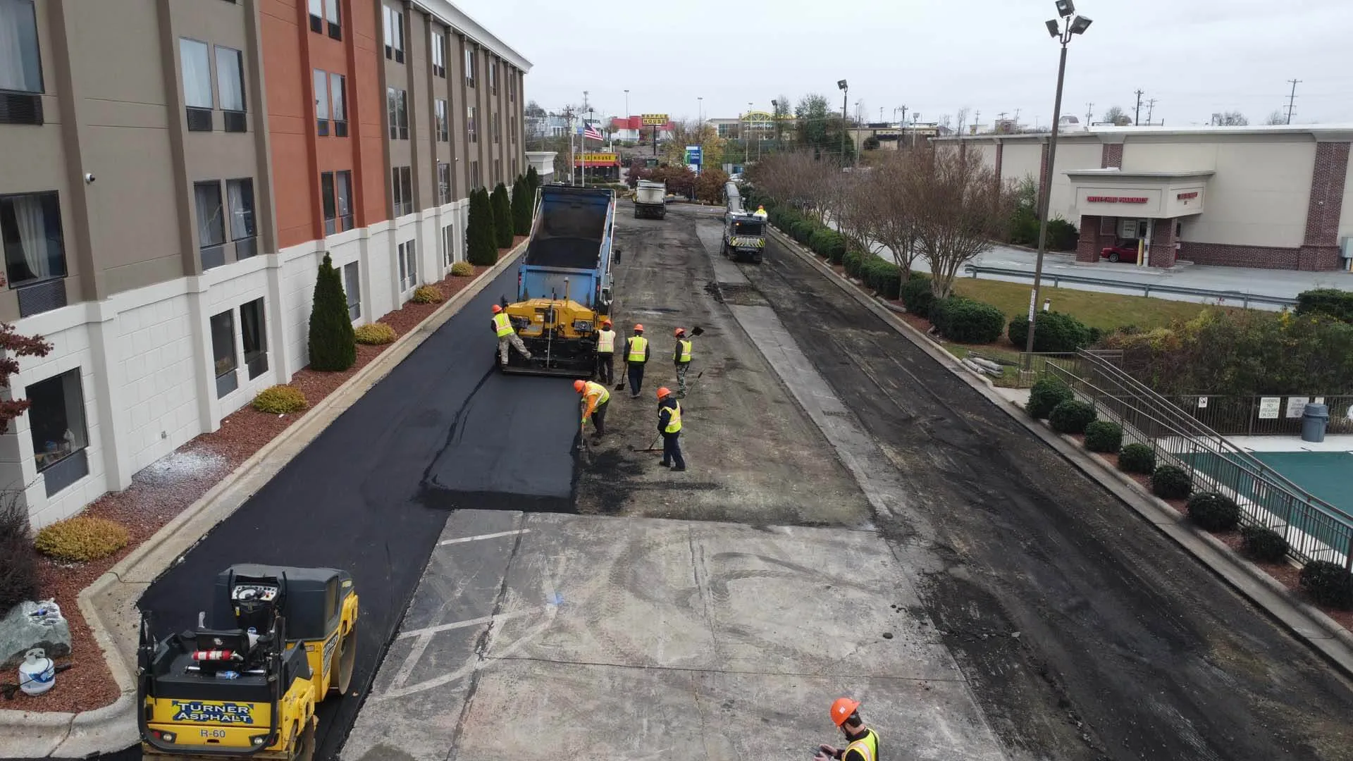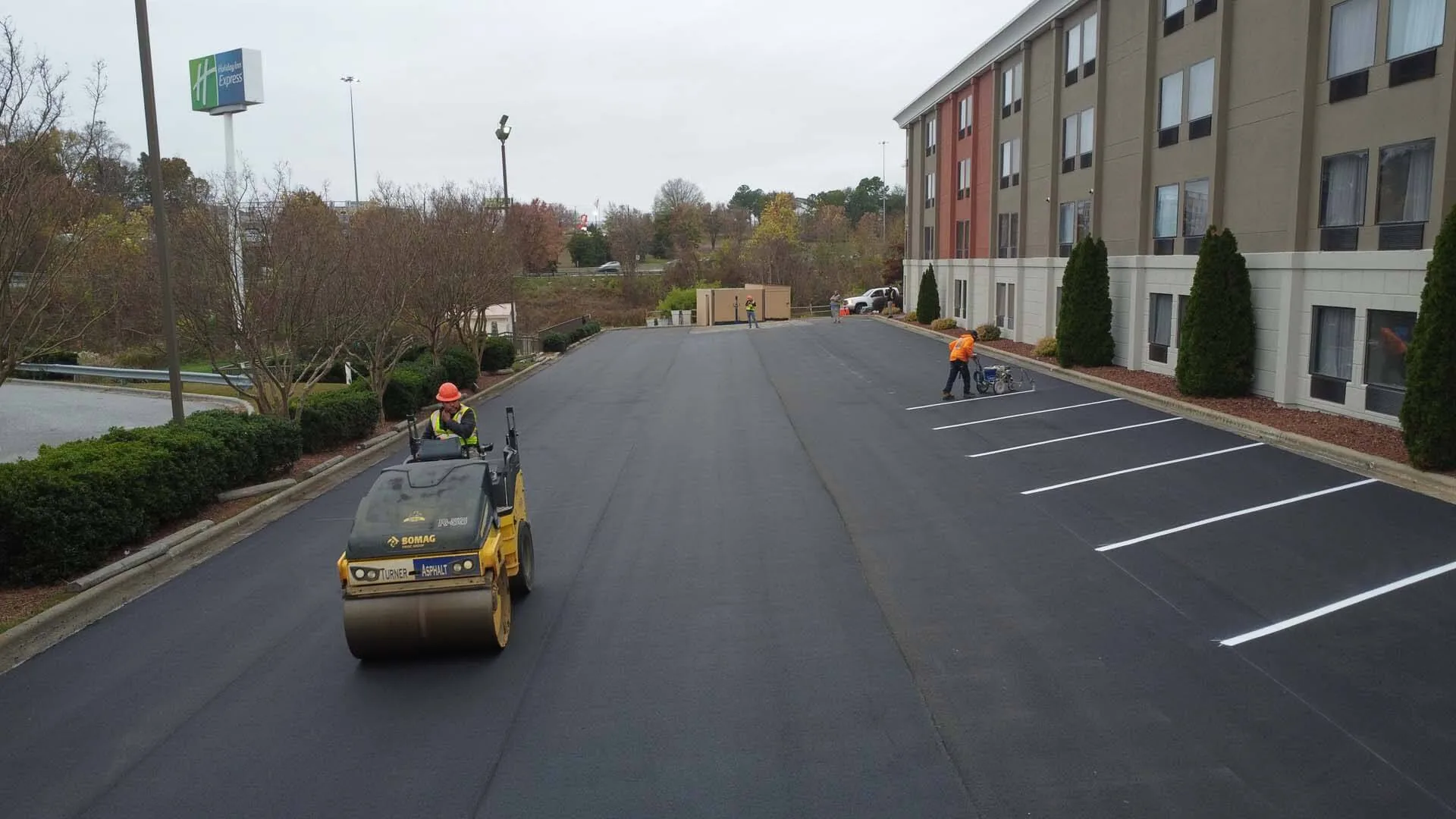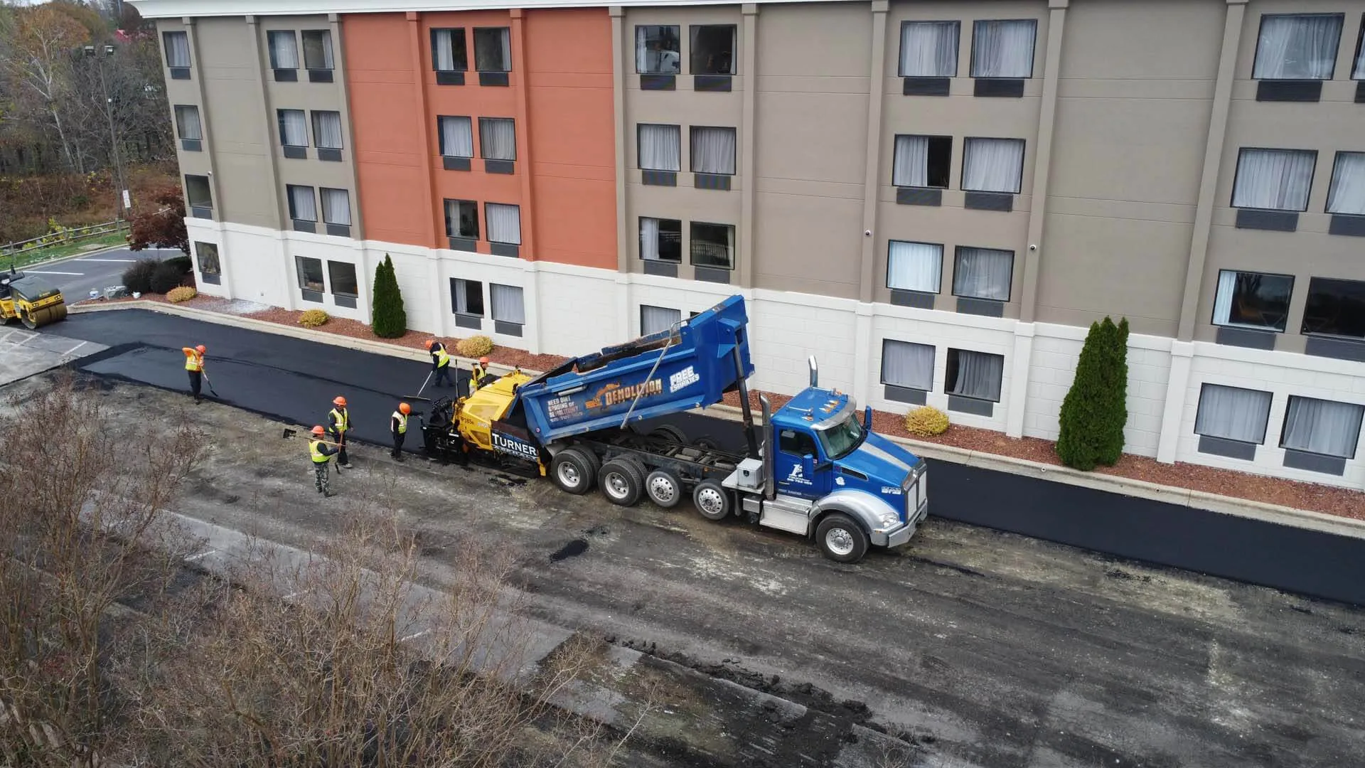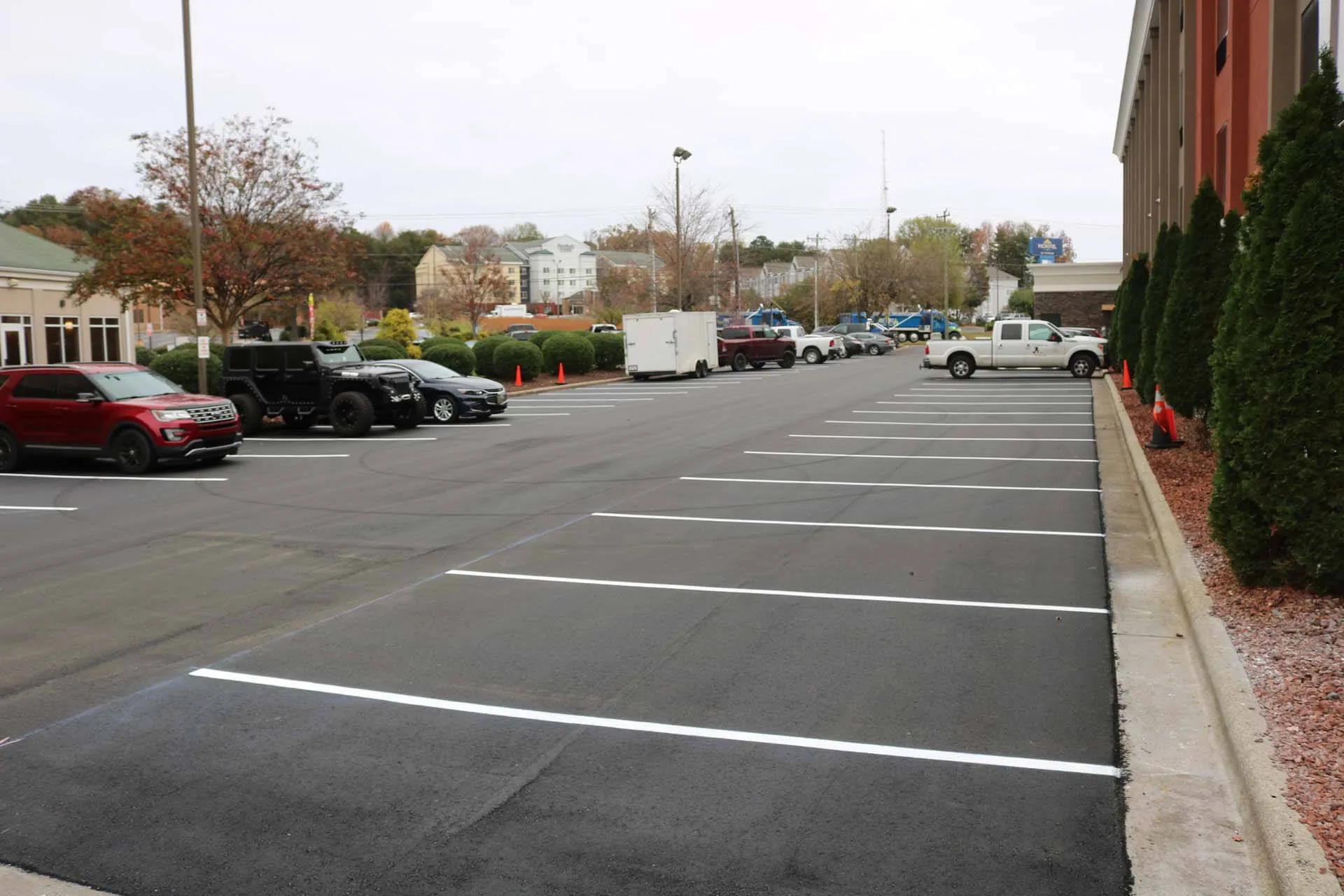 There comes a point in a parking lot lifespan where redoing the entire pavement surface makes more sense than repairs and sealcoating maintenance. In just two days, our team milled and repaved the parking lot, keeping half the lot and entrance open to guests each day. This is critical to all clients, ensuring that they can still operate as usual. Our team conducted traffic control to keep inconveniences for guests to an absolute minimum.