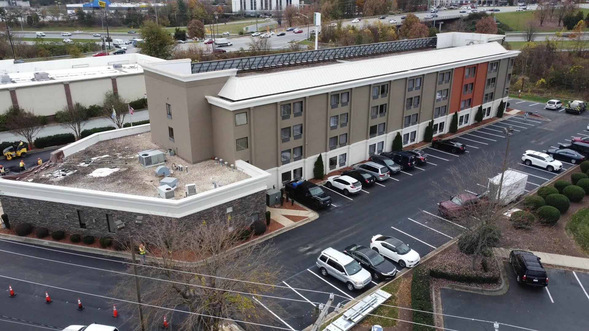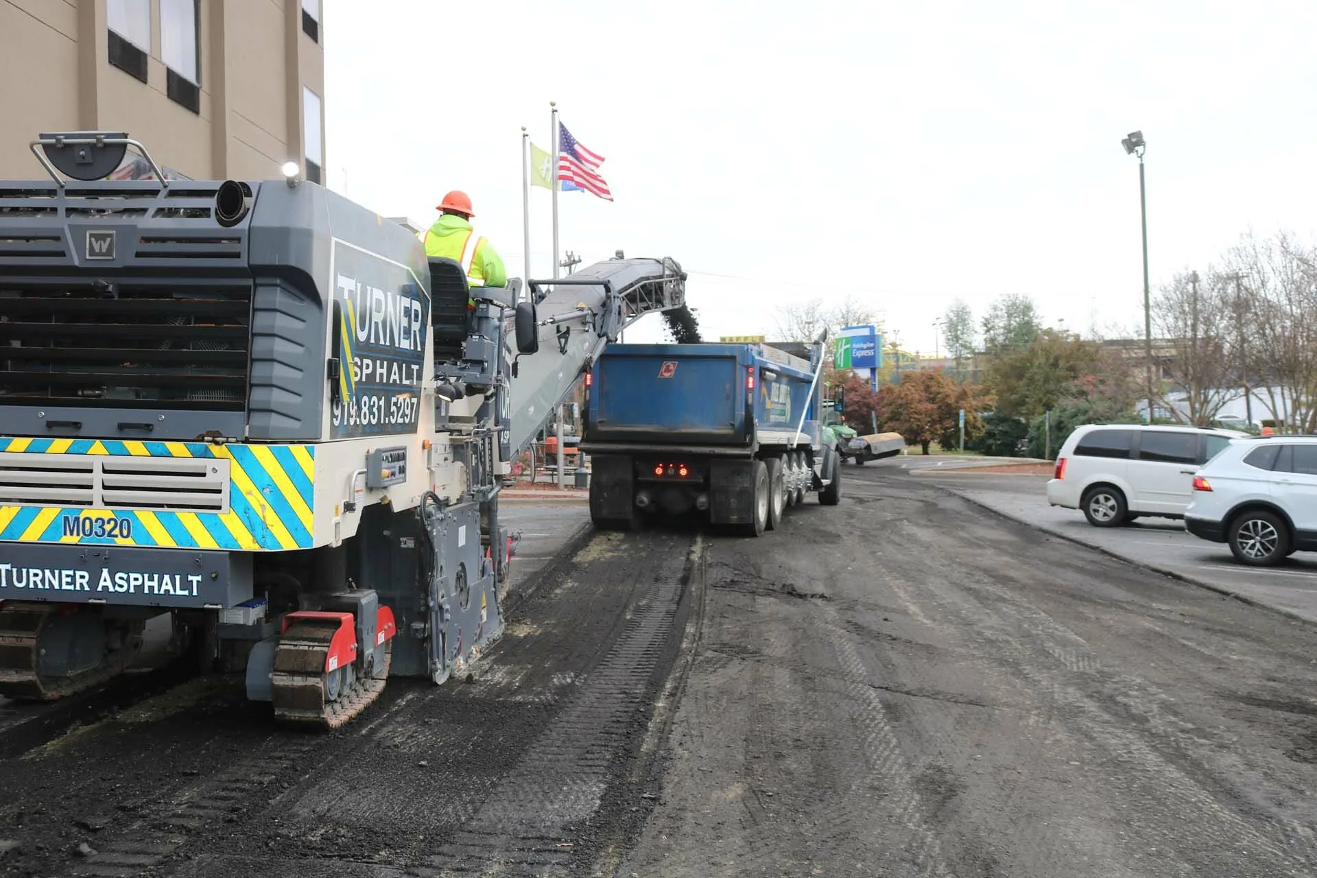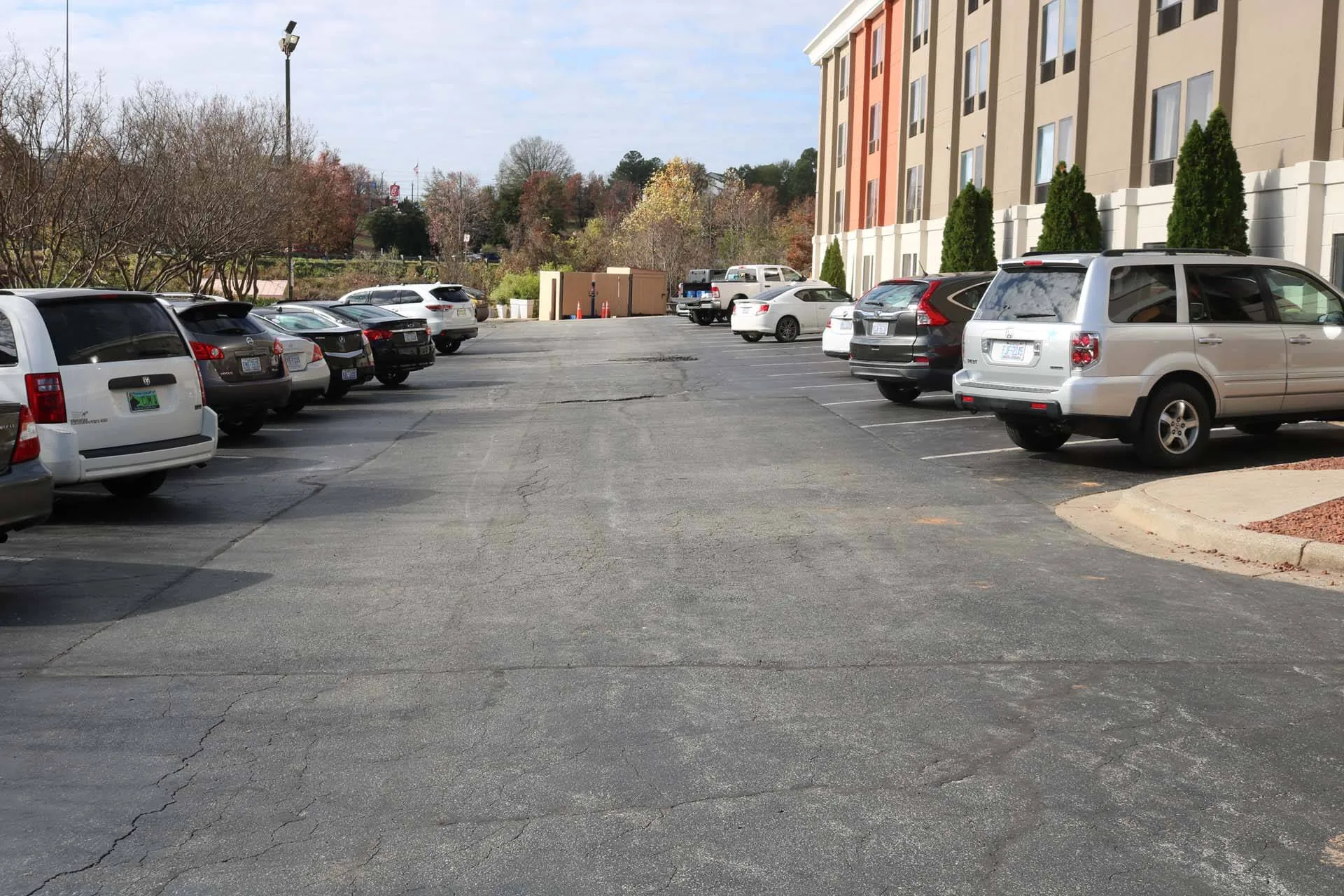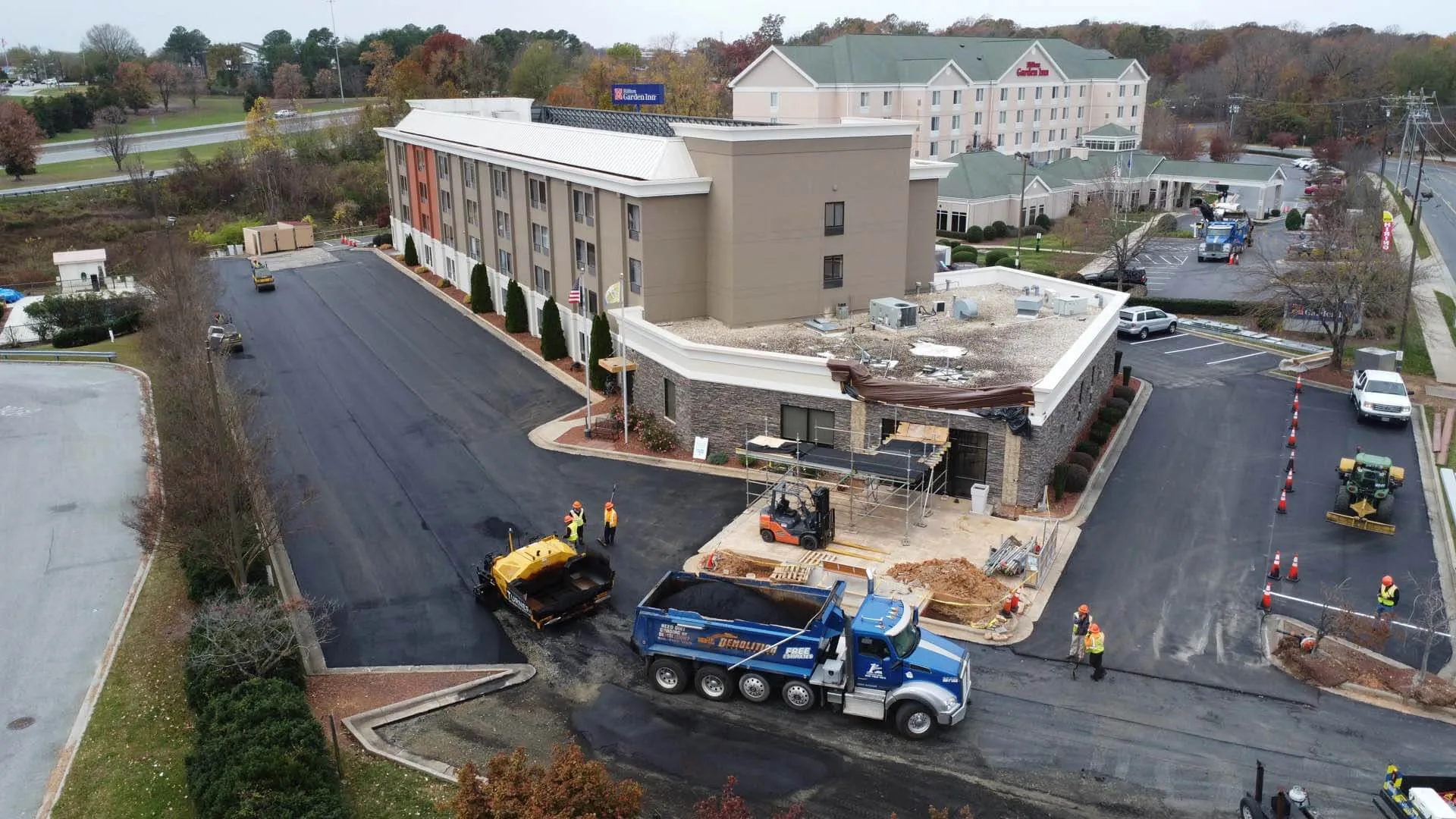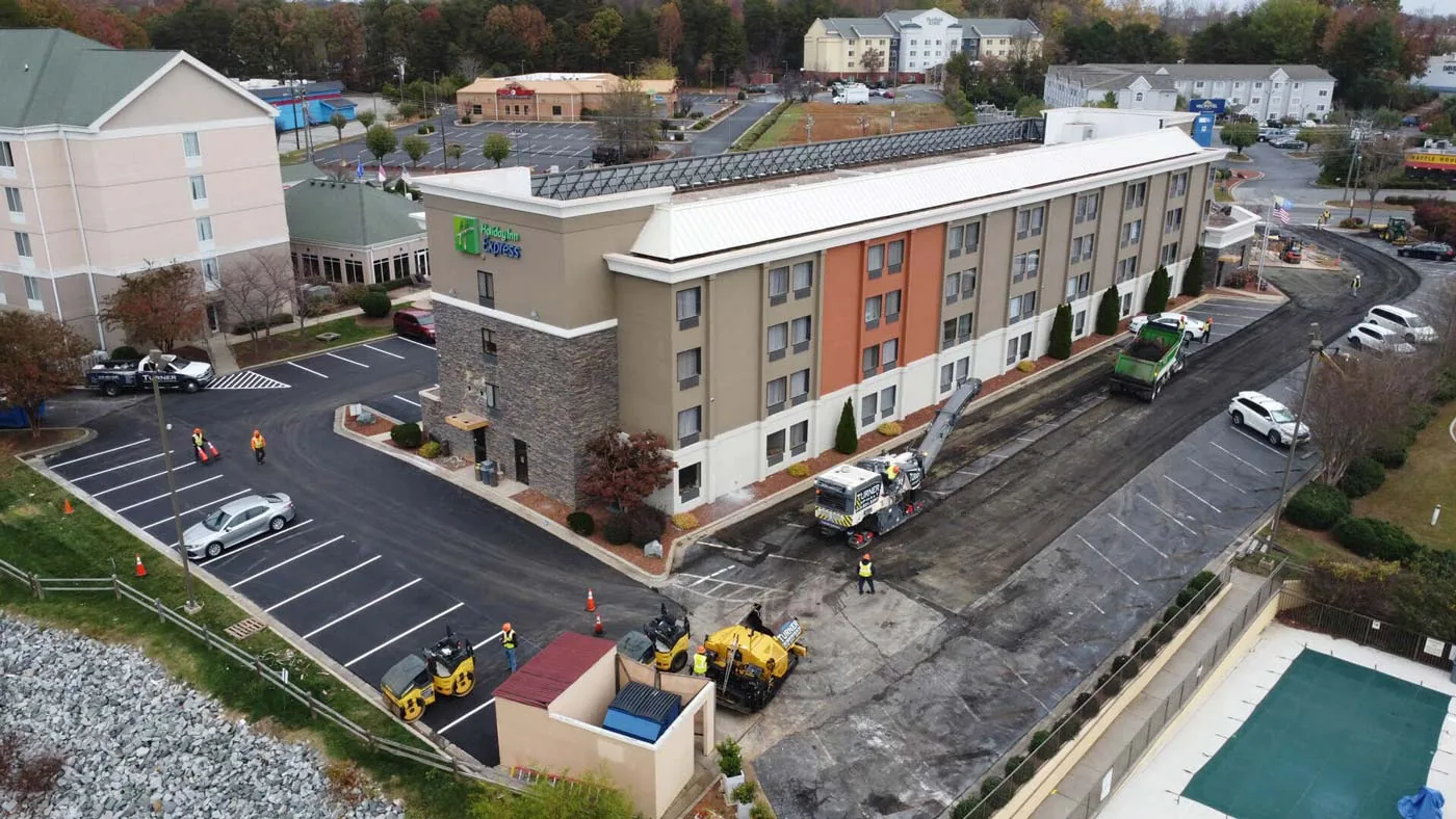 There comes a point in a parking lot lifespan where redoing the entire pavement surface makes more sense than repairs and sealcoating maintenance. In just two days, our team milled and repaved the parking lot, keeping half the lot and entrance open to guests each day. This is critical to all clients, ensuring that they can still operate as usual. Our team conducted traffic control to keep inconveniences for guests to an absolute minimum.