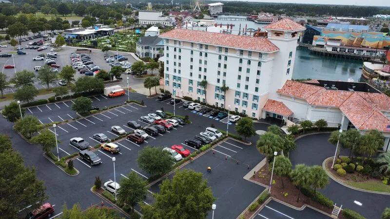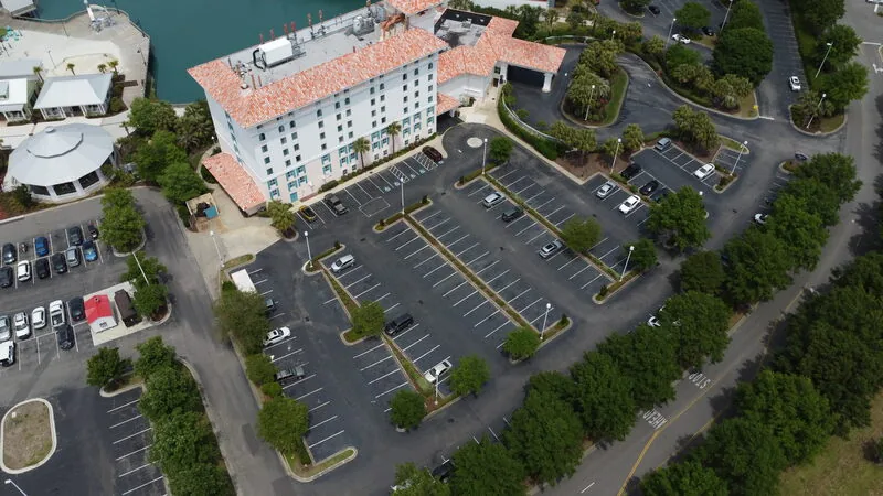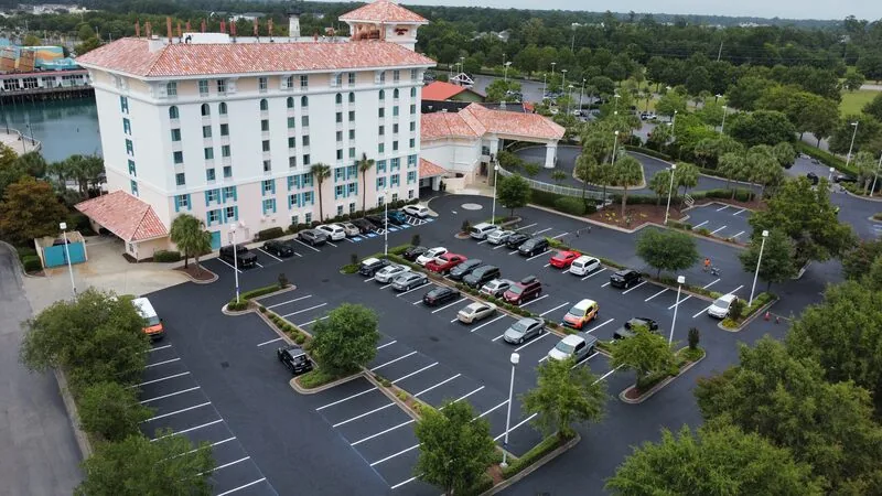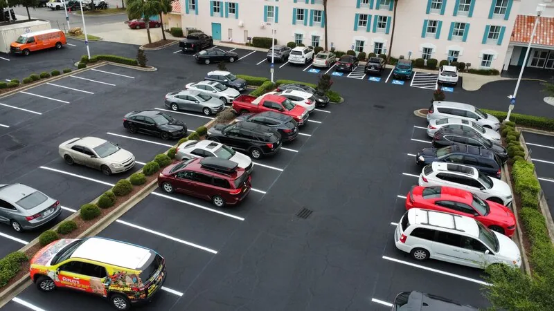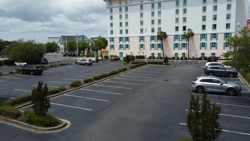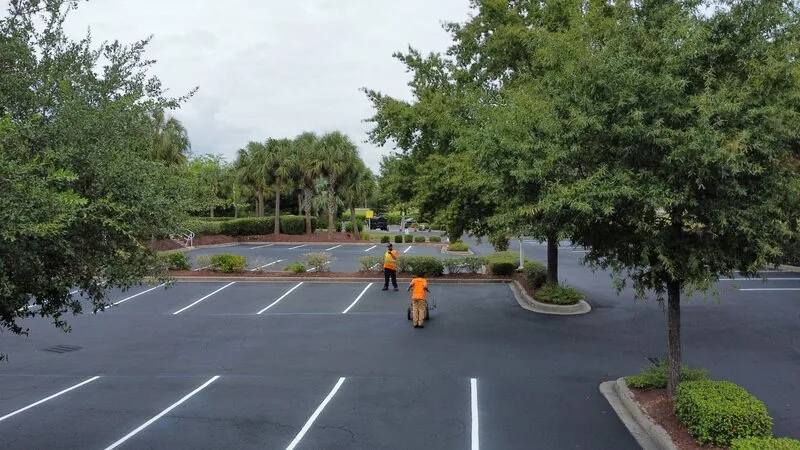 Sealcoating is obviously an aesthetic upgrade to a parking lot, however the maintenance aspect is even more important for sound pavement. Recommended every 2-3 years on a 2-15 year oldparking lot, sealer protects the oils in the existing pavement to give it a longer lifespan. This property had us come just after Labor Day when tourist traffic was a little slower than peak summer months to complete the two-day project.