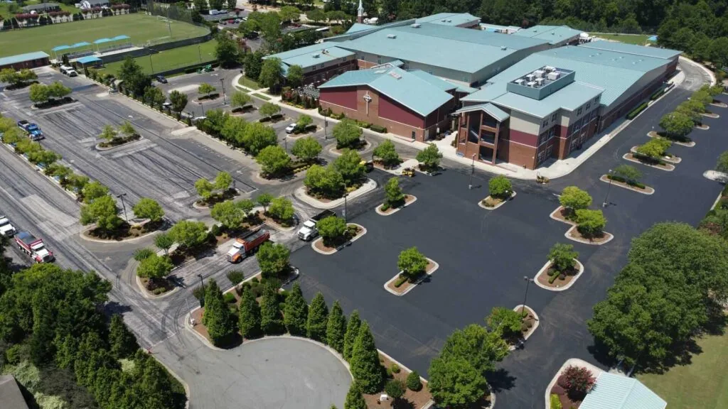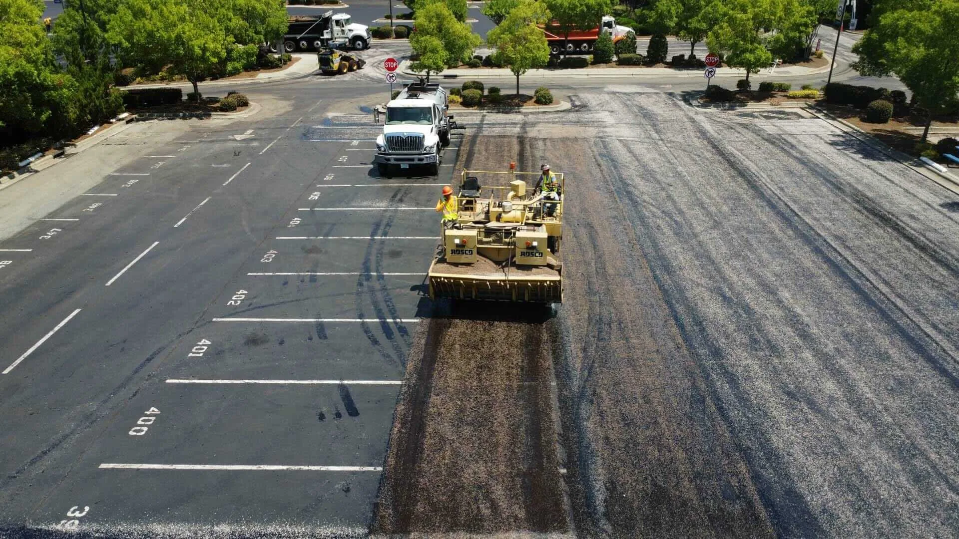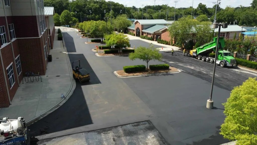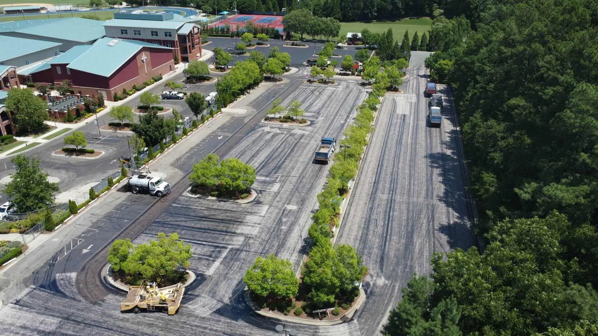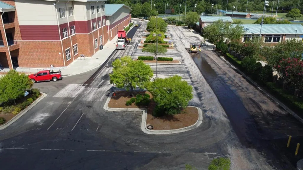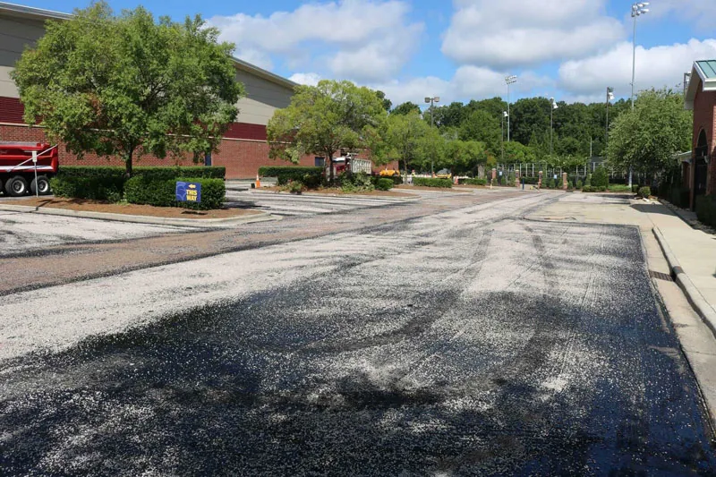 The existing school parking lot at this school had been sealcoated multiple times and was still in good enough condition to overlay the existing asphalt. The chipseal process was utilized to prevent reflective cracking on the new asphalt surface. This project was completed over a one-week period during the summer while students were on break.