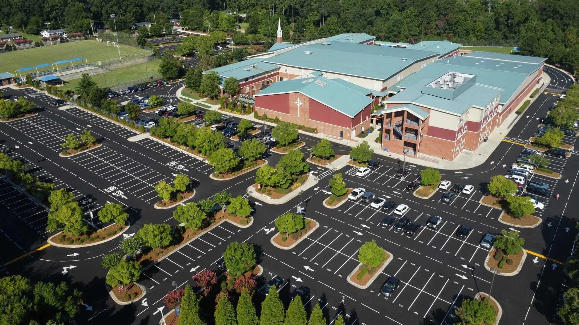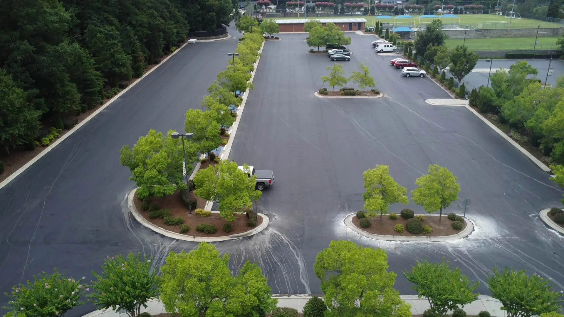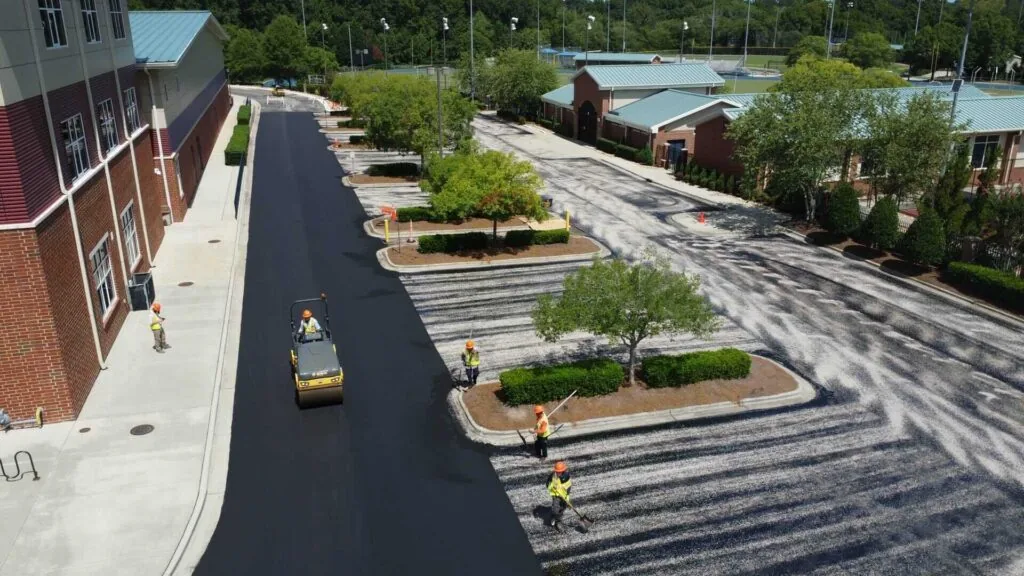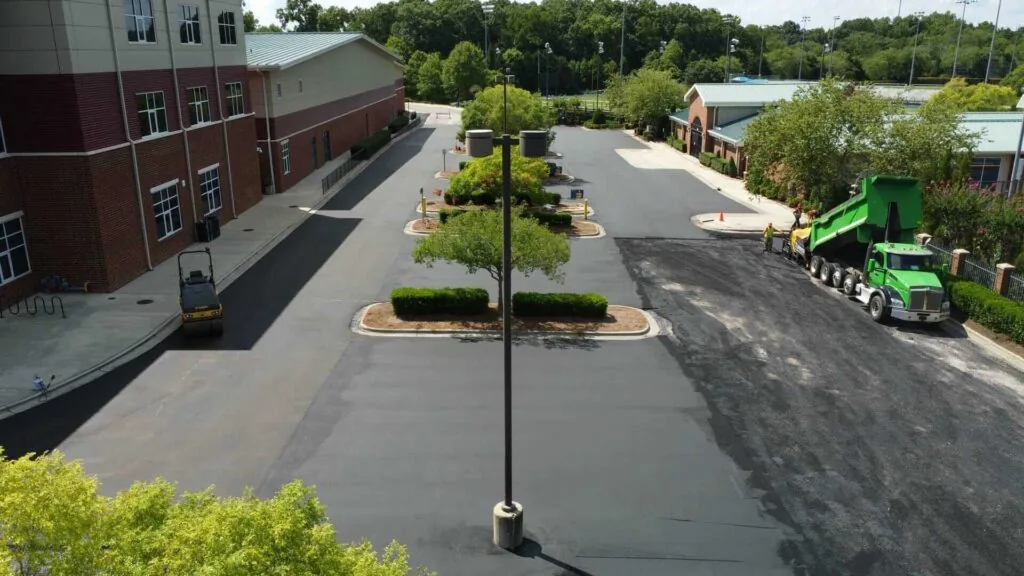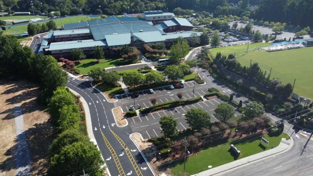 The existing school parking lot at this school had been sealcoated multiple times and was still in good enough condition to overlay the existing asphalt. The chipseal process was utilized to prevent reflective cracking on the new asphalt surface. This project was completed over a one-week period during the summer while students were on break.