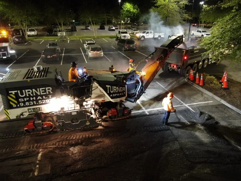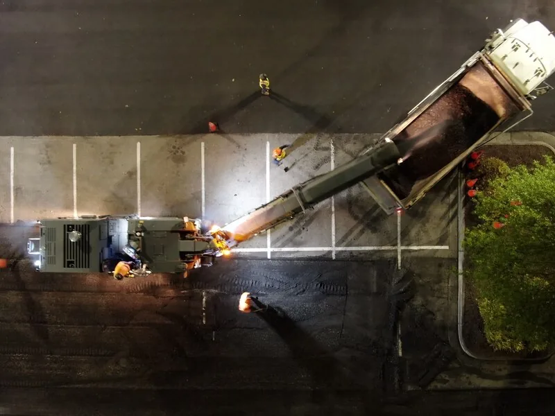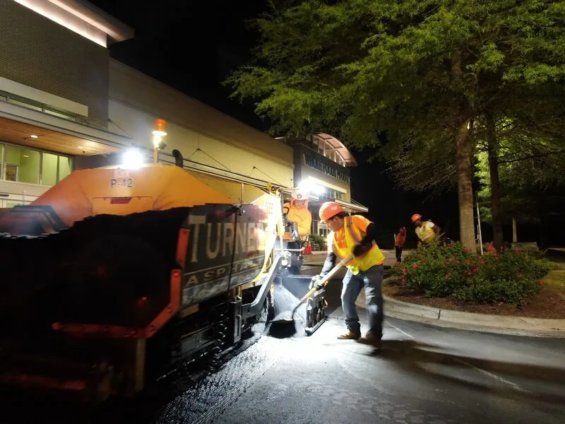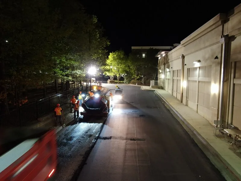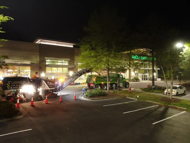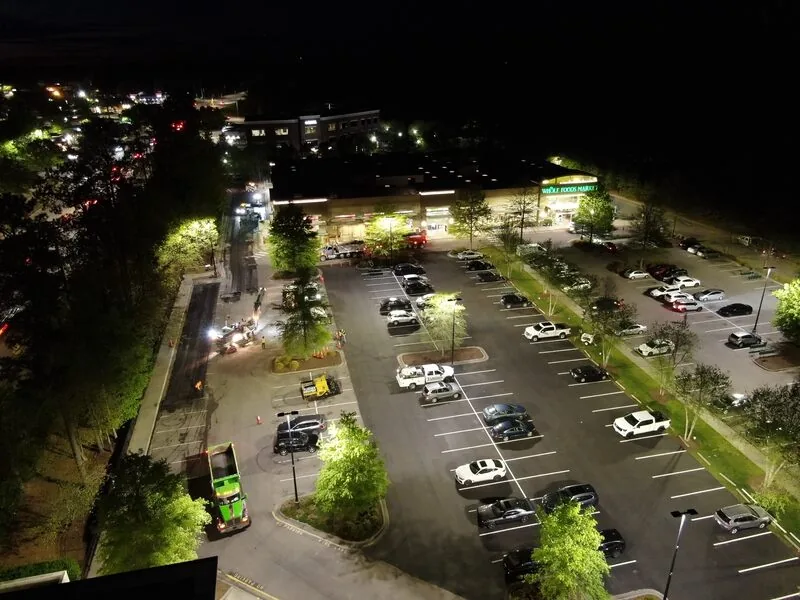 The anchor tenant of this center needed the project completed after hours to minimize customer disruptions – so we showed up at night. We have numerous projects that require our teams to work nights and weekends. This grocery-anchored retail property was no different. Repaving half of the parking lot, this project took four nights total, starting at 10pm and being off the jobsite each morning by 7am.